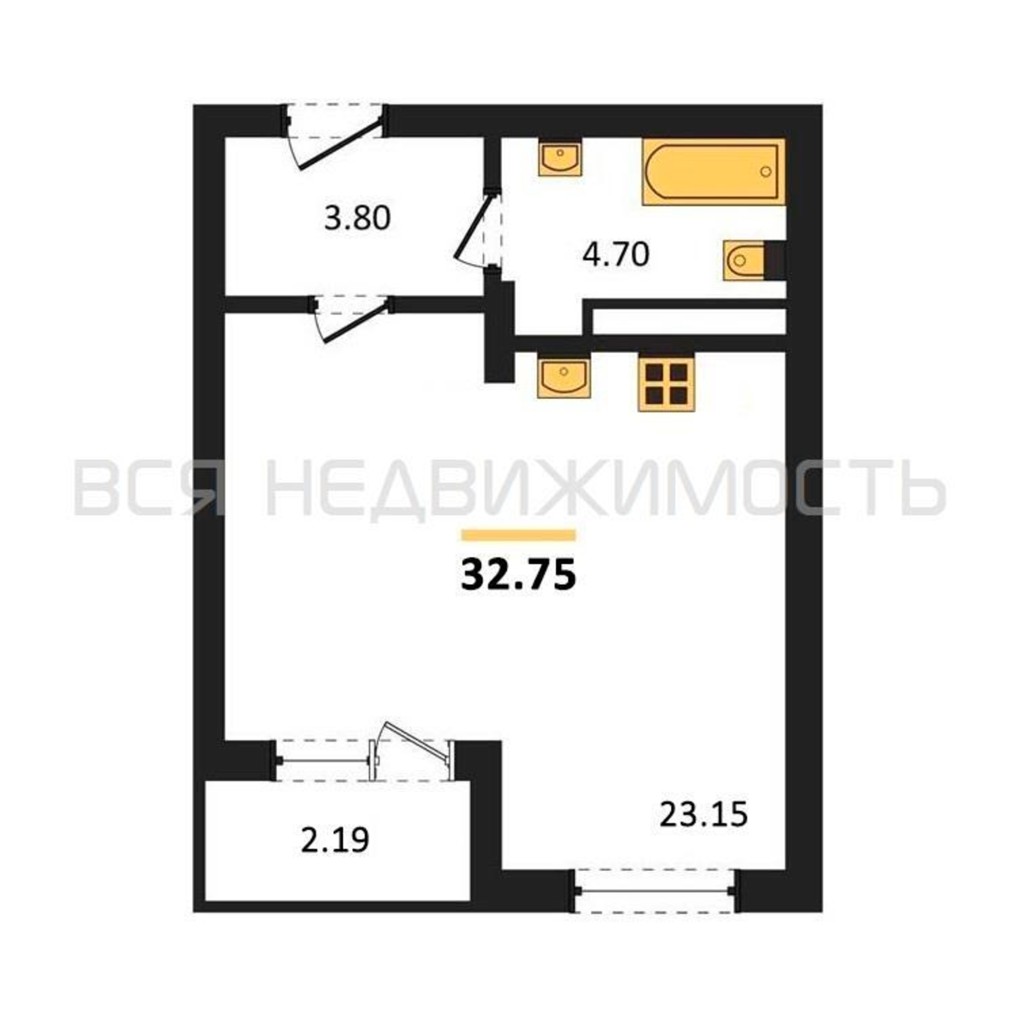 Квартиры-студии, 32.75 м² 2/9 этаж ID объекта 100118660