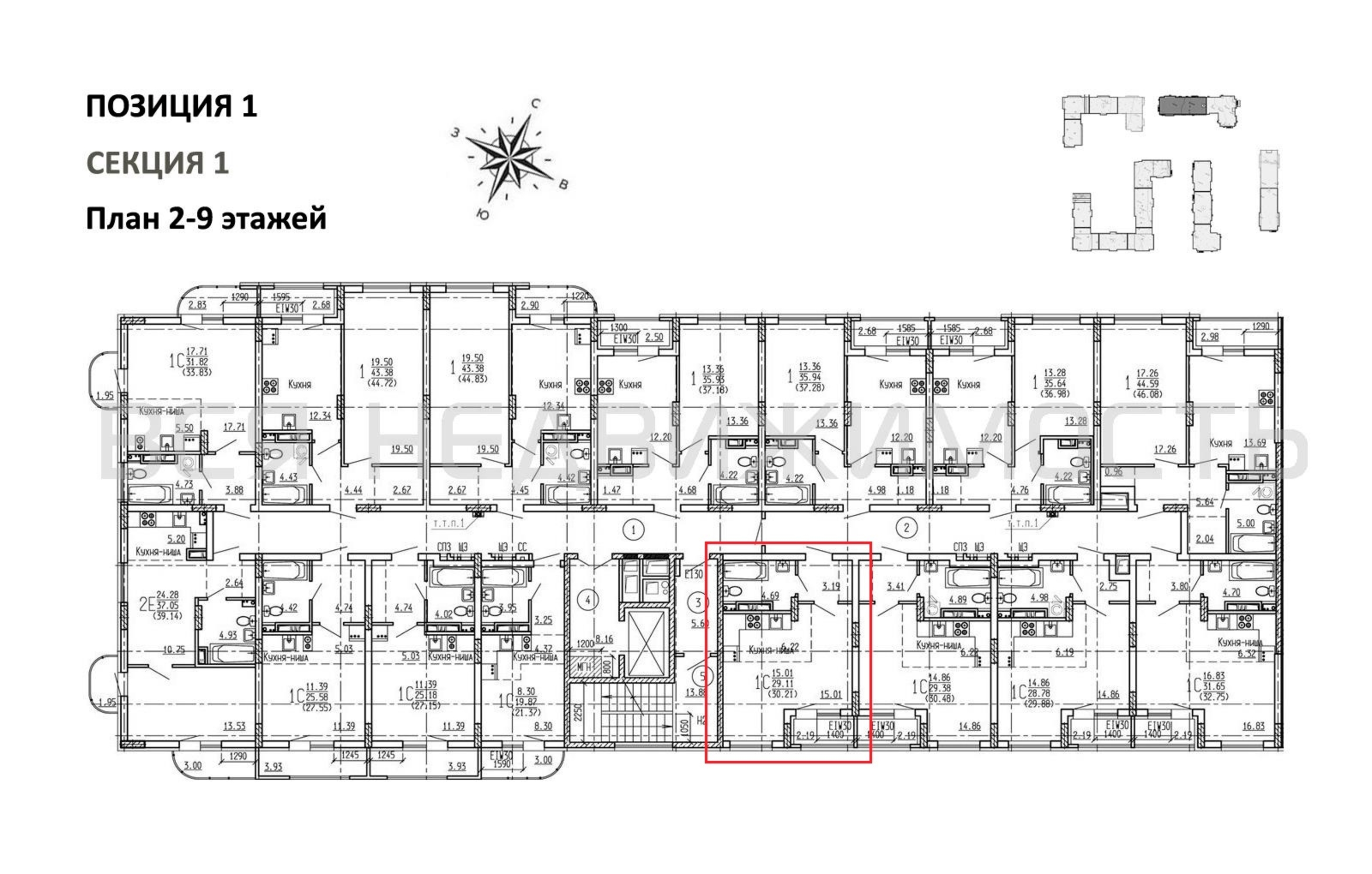 Квартиры-студии, 30.21 м² 3/9 этаж ID объекта 100118698
