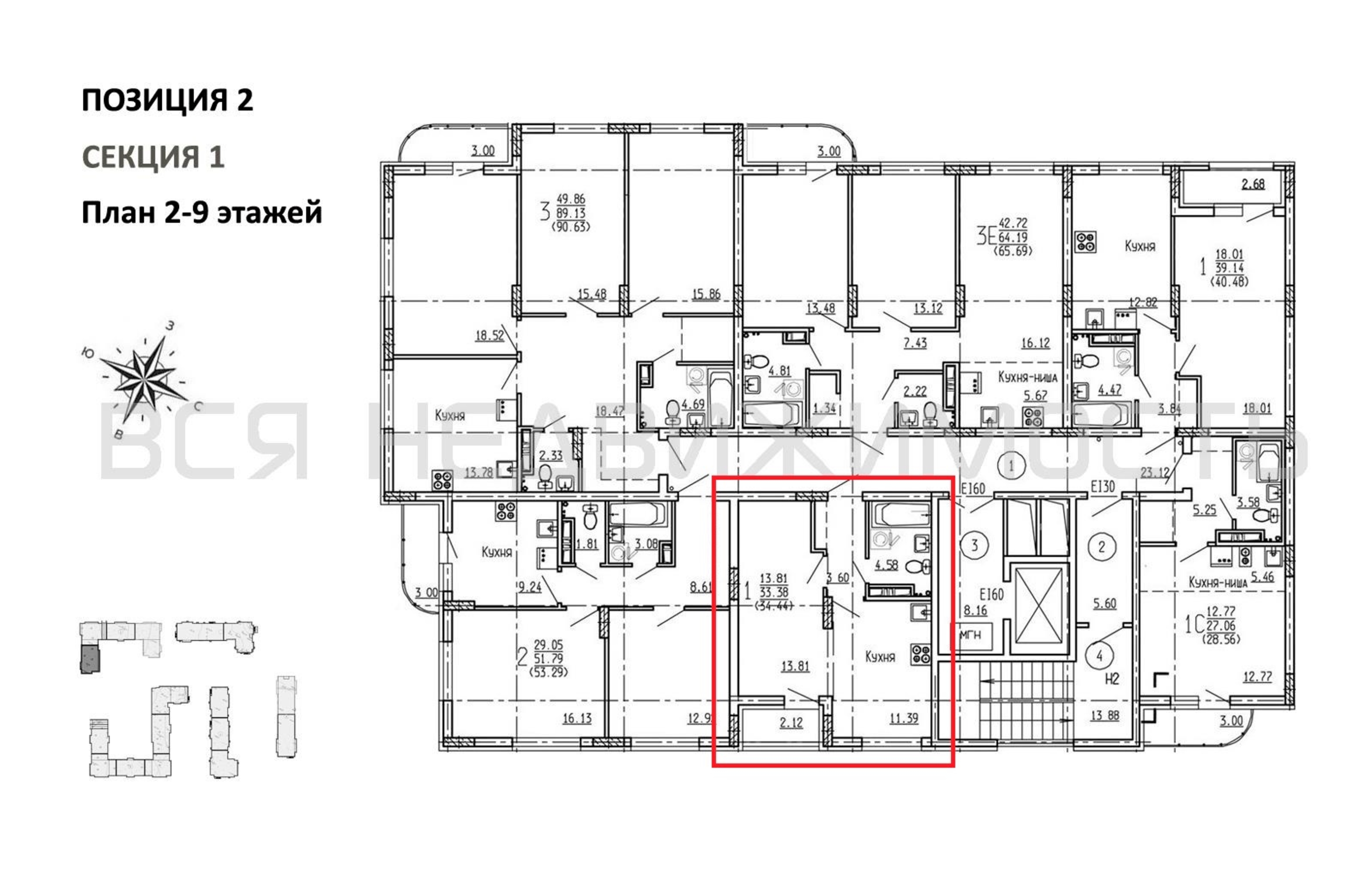 1-комнатная квартира, 34.44 м² 4/9 этаж ID объекта 100118889