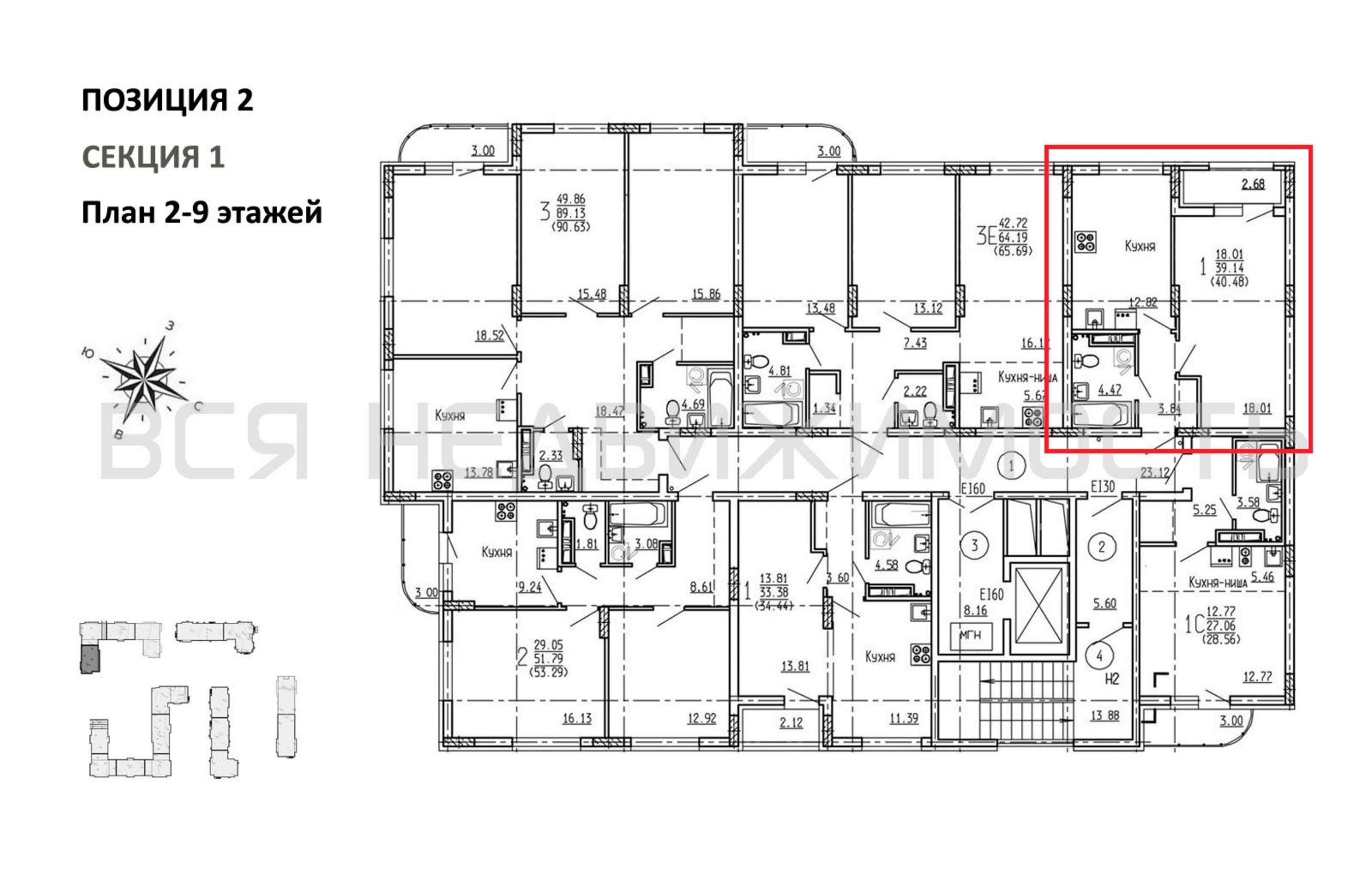 1-комнатная квартира, 40.48 м² 6/9 этаж ID объекта 100118905