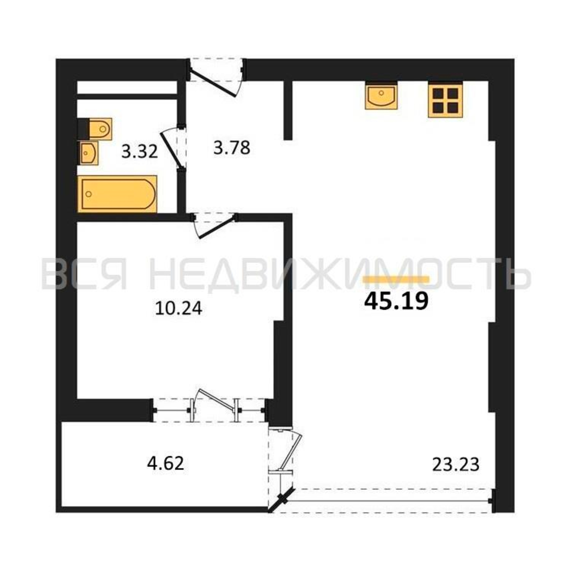 Строительная площадь45.19 м²