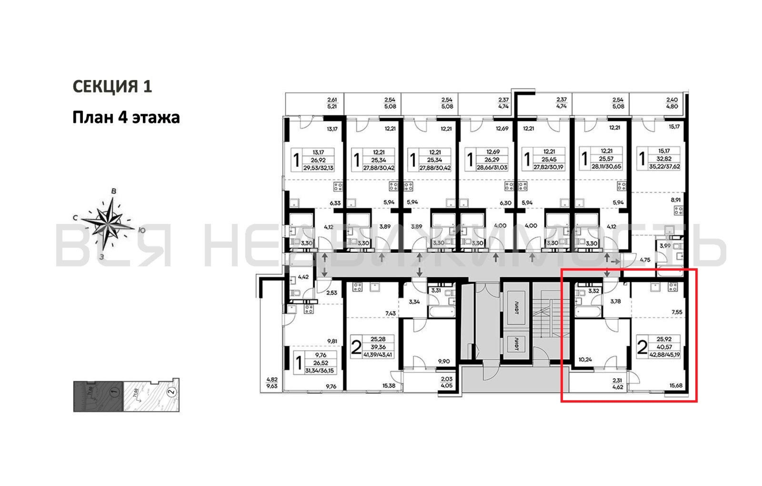 1-комнатная квартира, 45.19 м² 4/16 этаж ID объекта 100119828