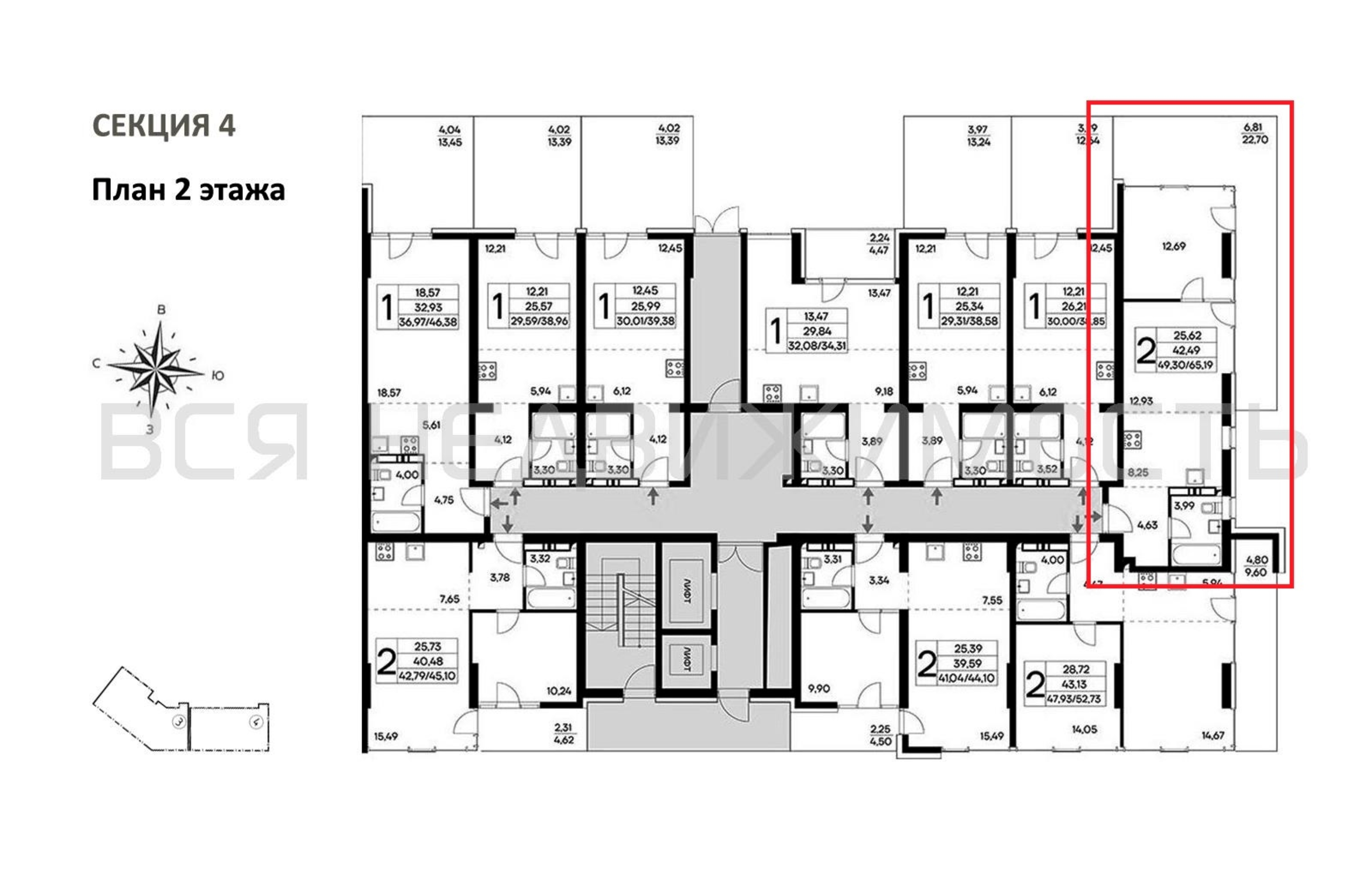 Общая площадь42.49 м²