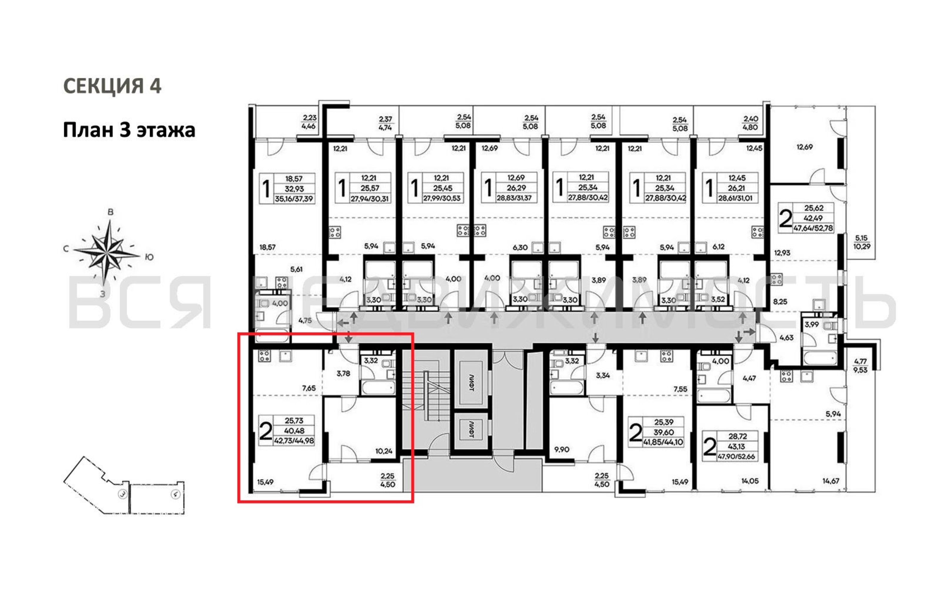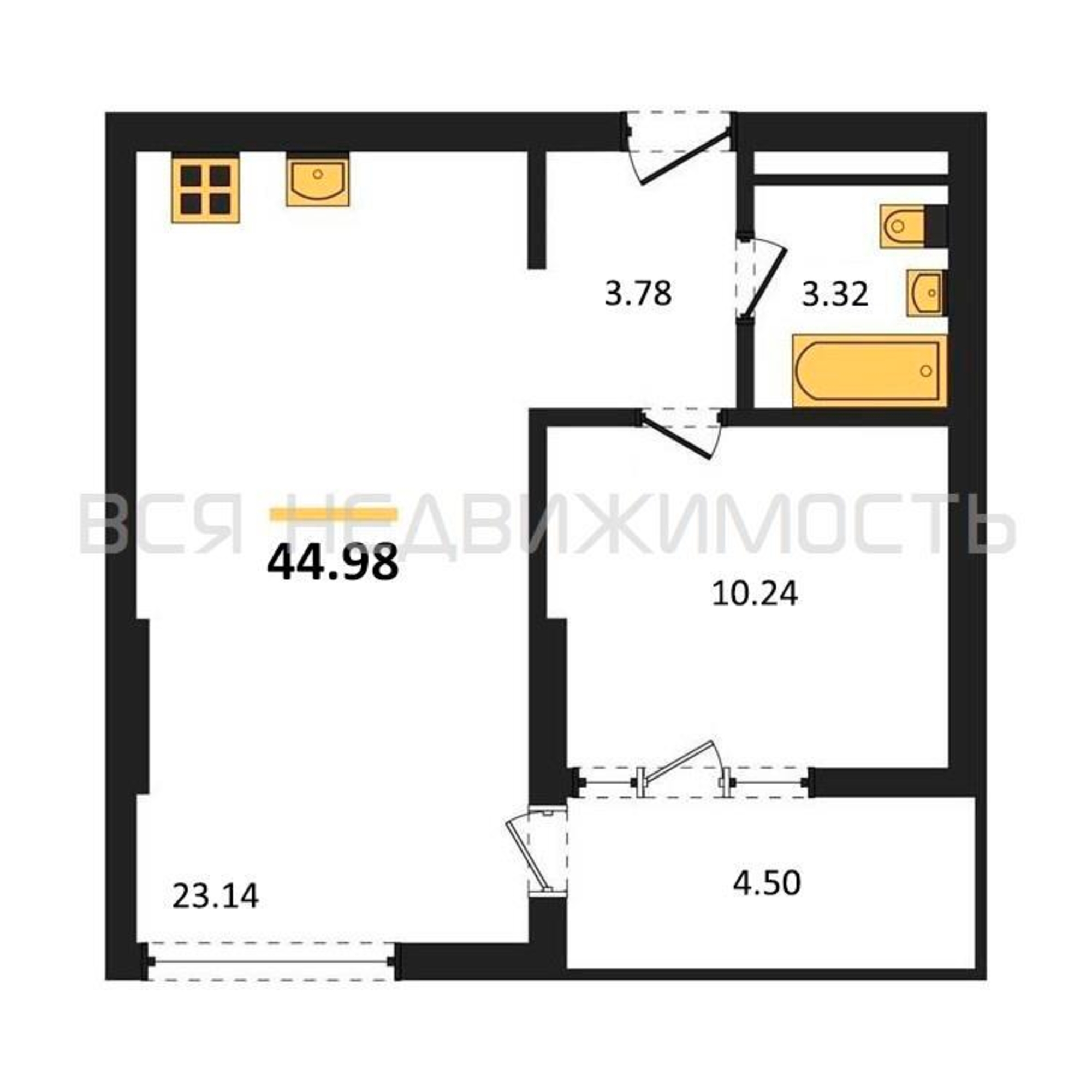 1-комнатная квартира, 44.98 м² 3/14 этаж ID объекта 100119945
