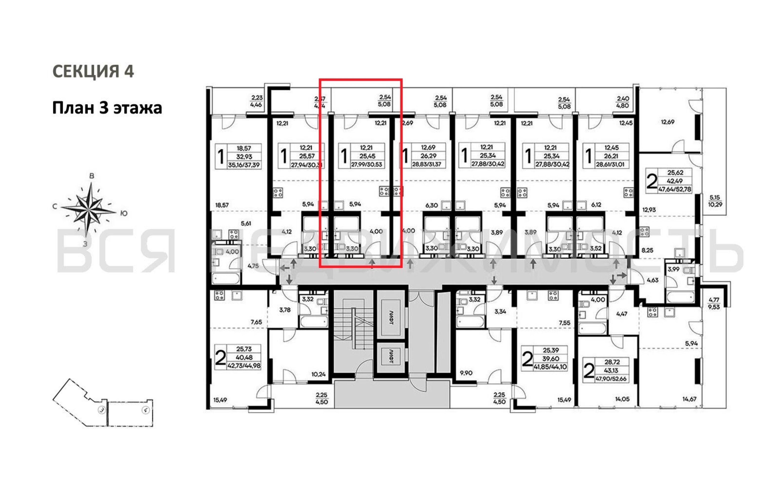 Квартиры-студии, 30.53 м² 3/14 этаж ID объекта 100119948