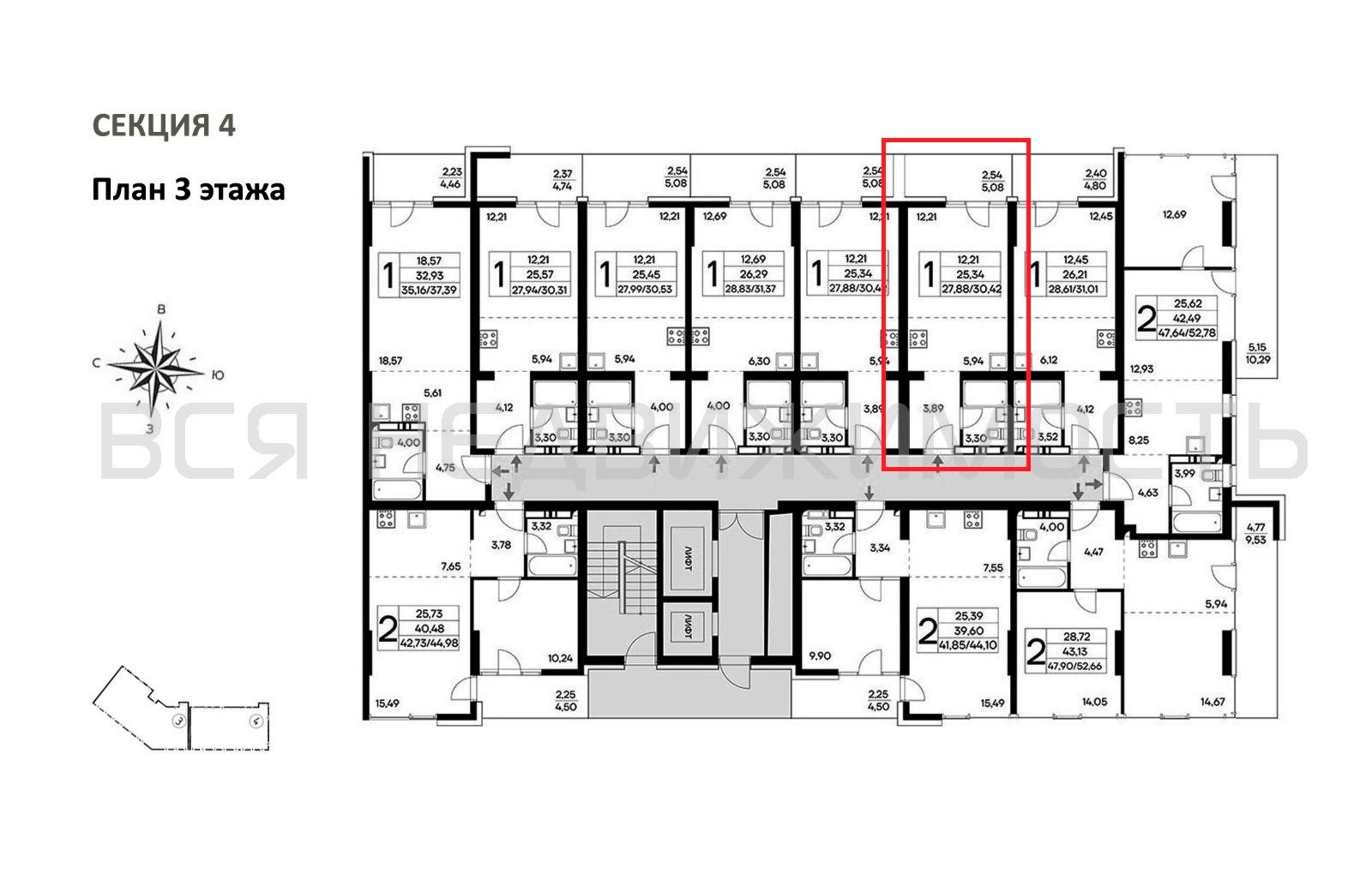 Общая площадь25.34 м²