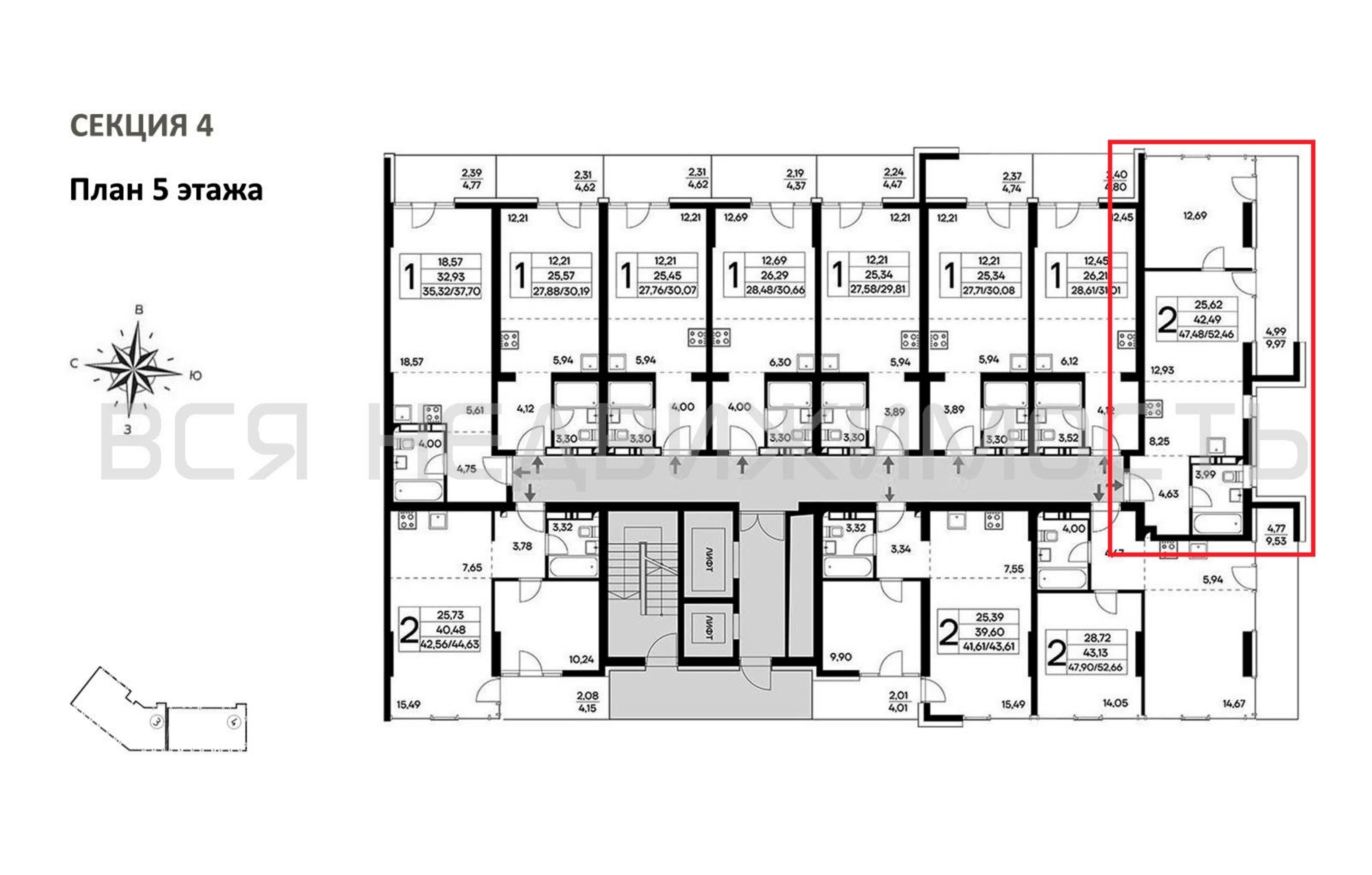 1-комнатная квартира, 52.46 м² 5/14 этаж ID объекта 100119975