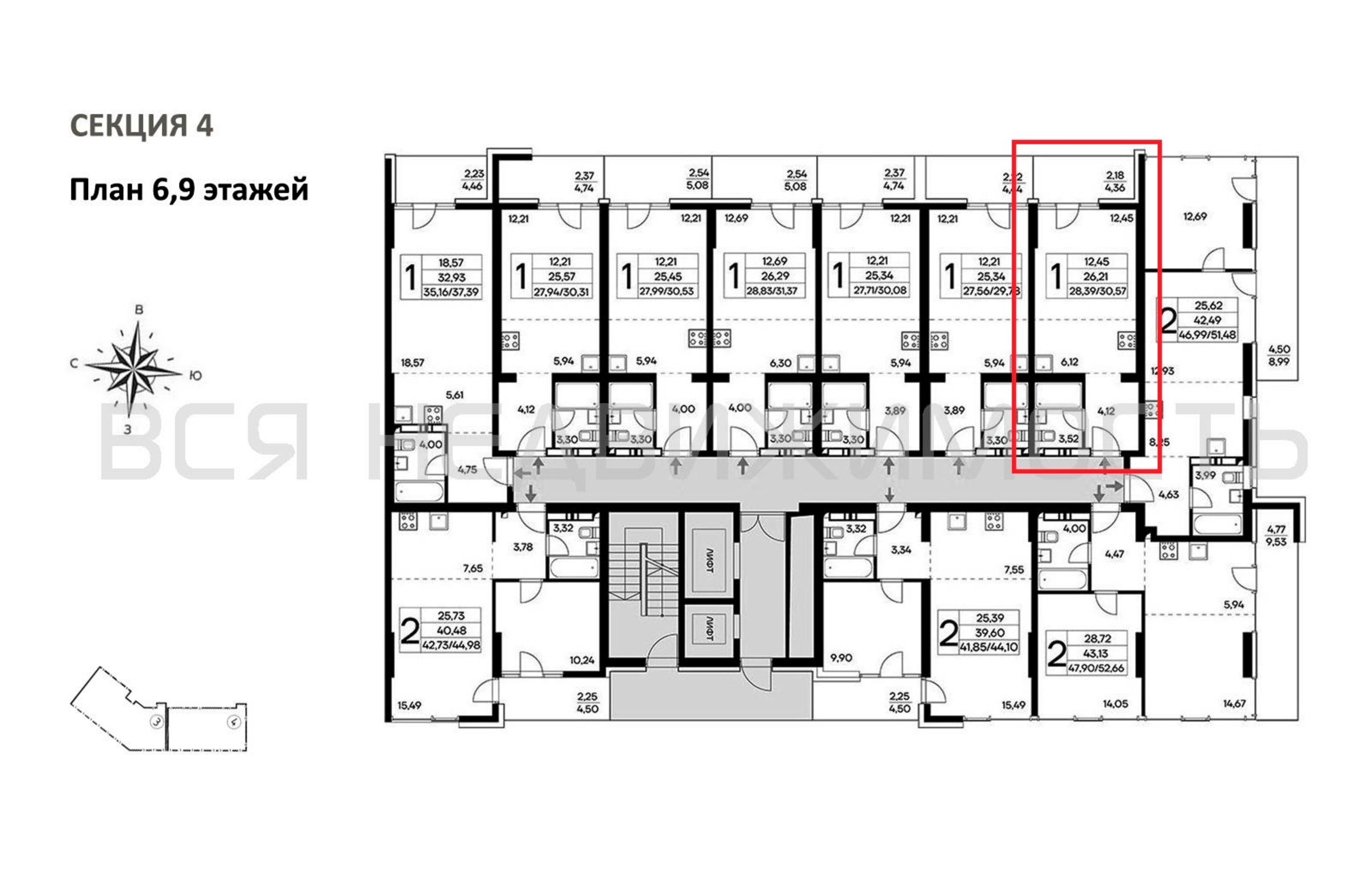 Квартиры-студии, 30.57 м² 6/14 этаж ID объекта 100119985