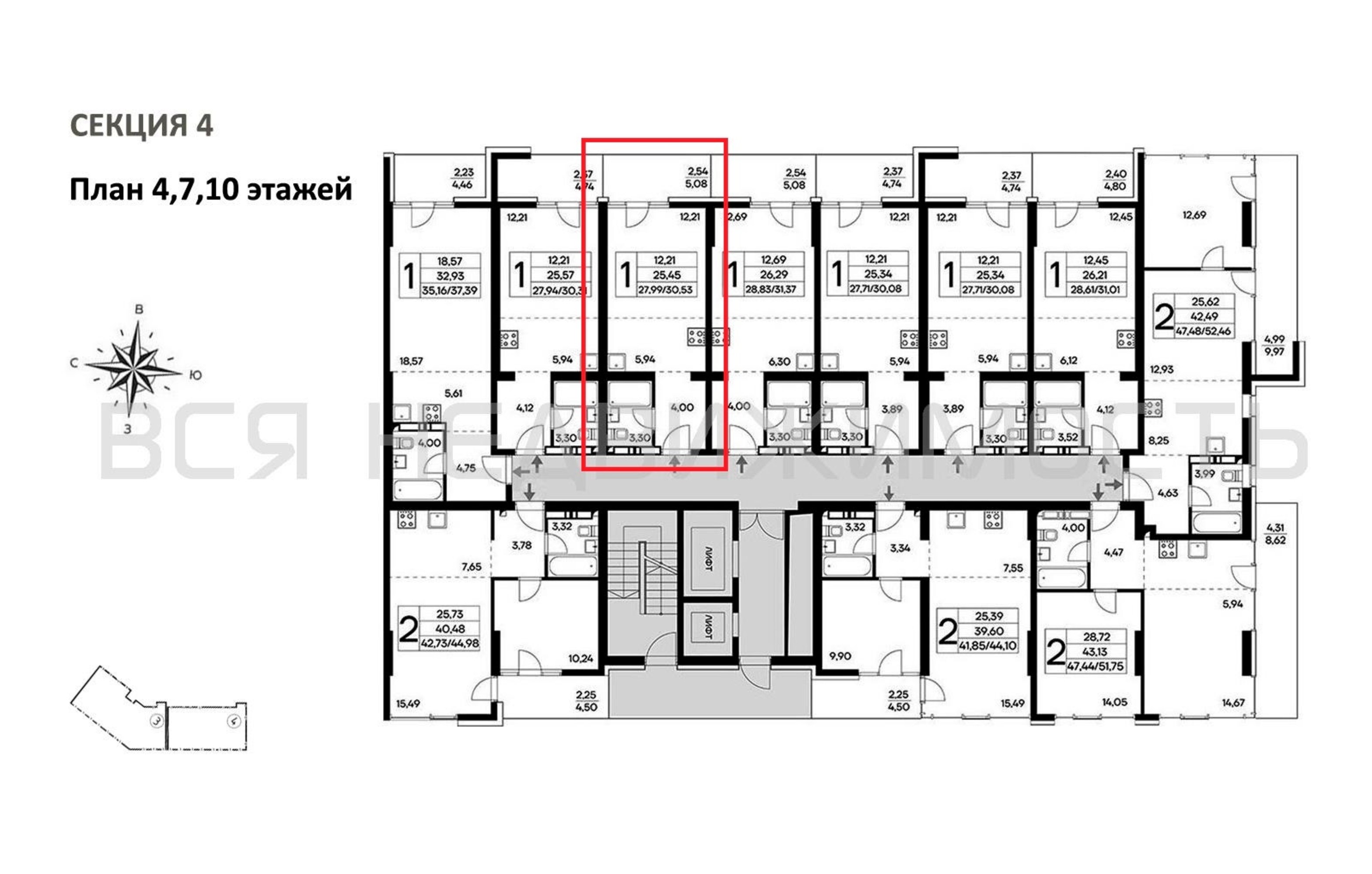 Общая площадь25.45 м²