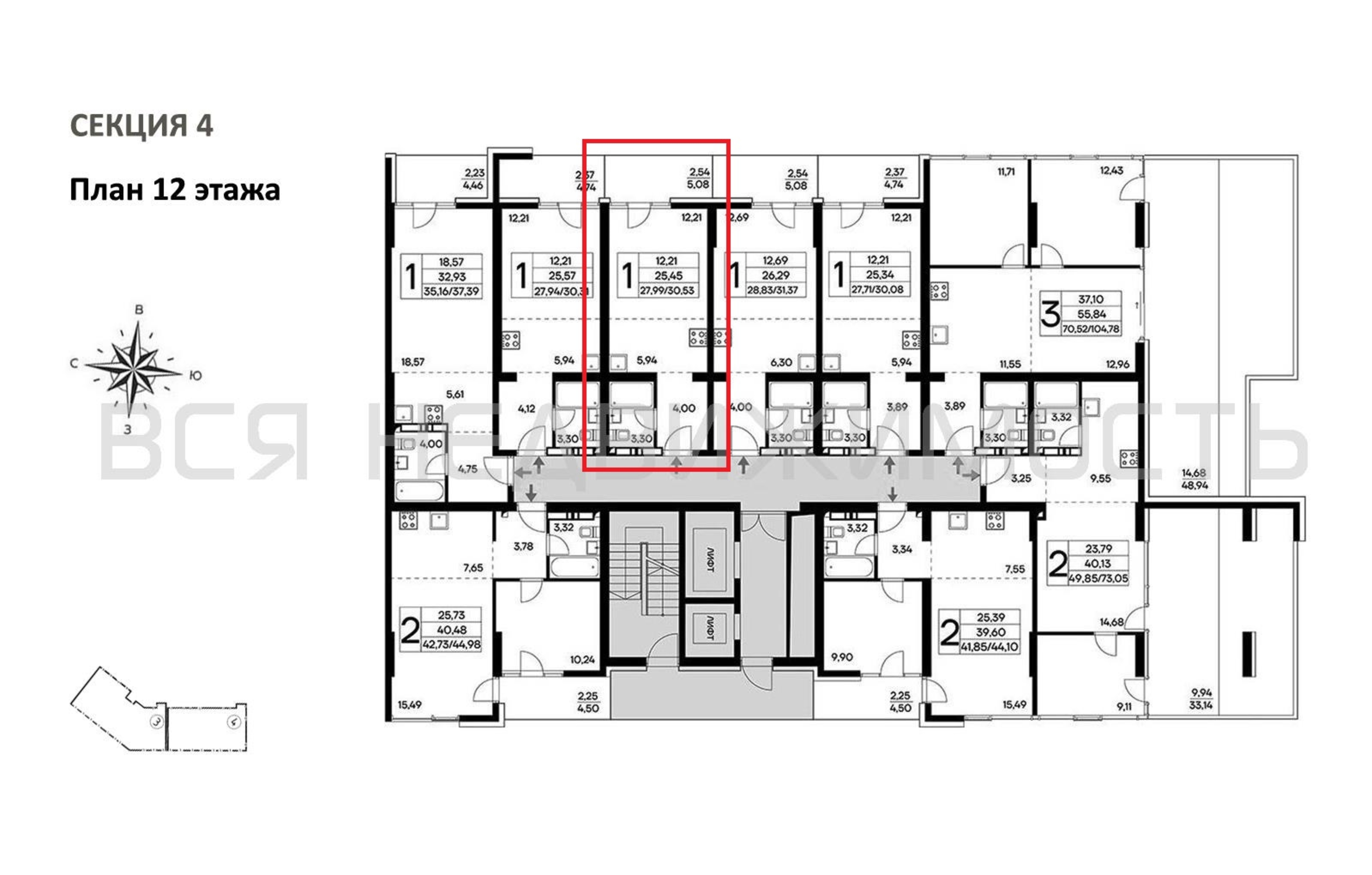 Общая площадь25.45 м²