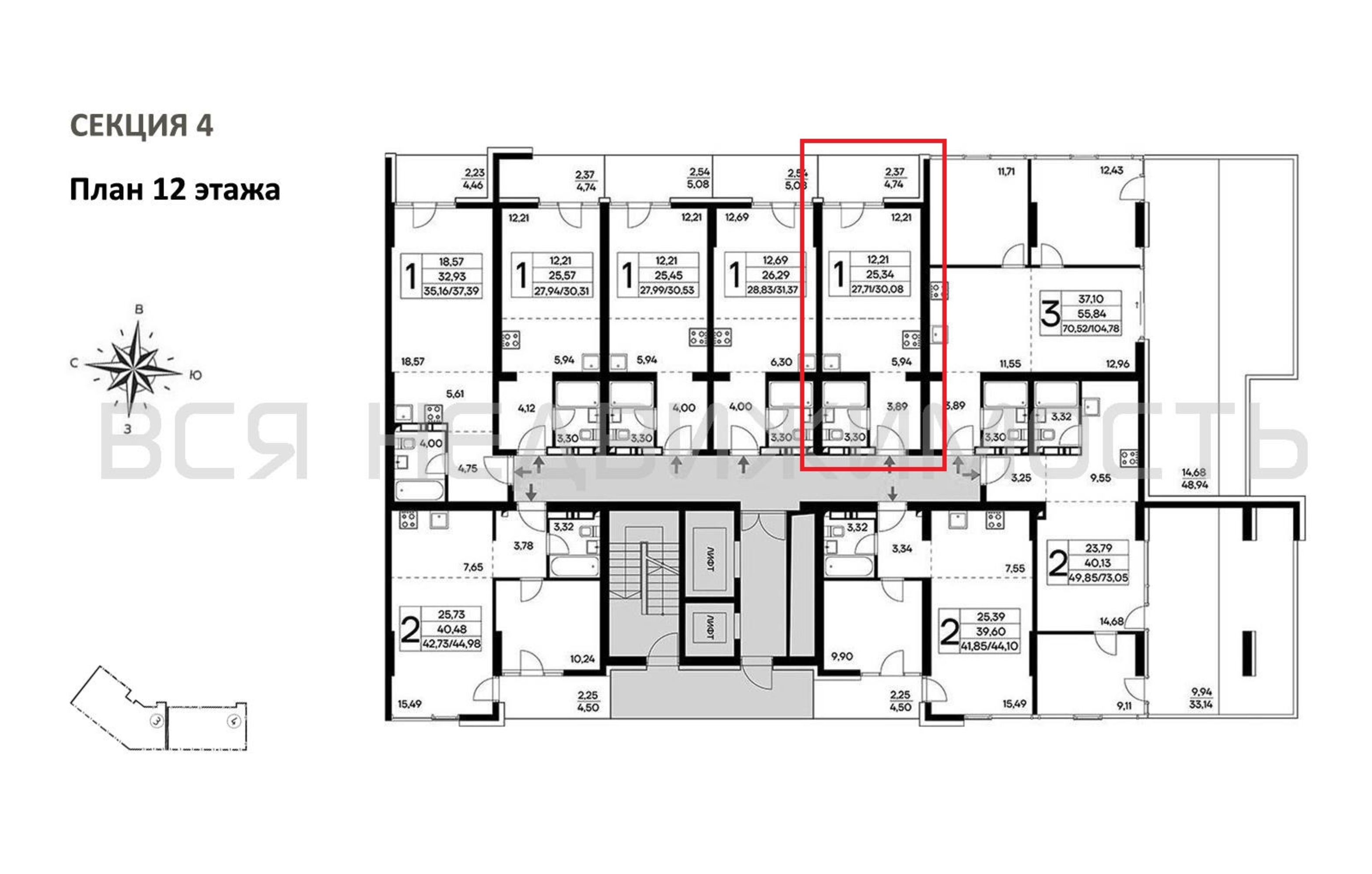 Общая площадь25.34 м²