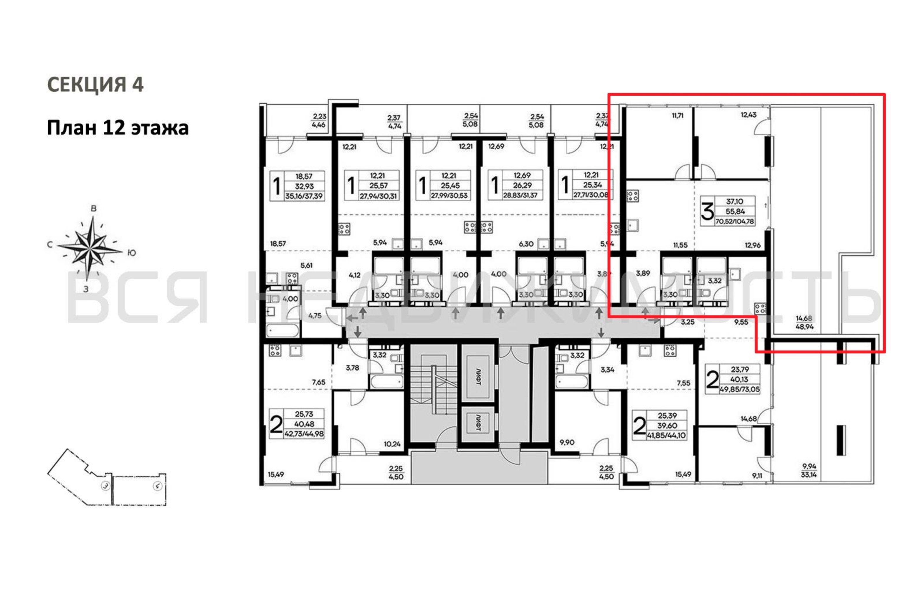 2-комнатная квартира, 104.78 м² 12/14 этаж ID объекта 100120050