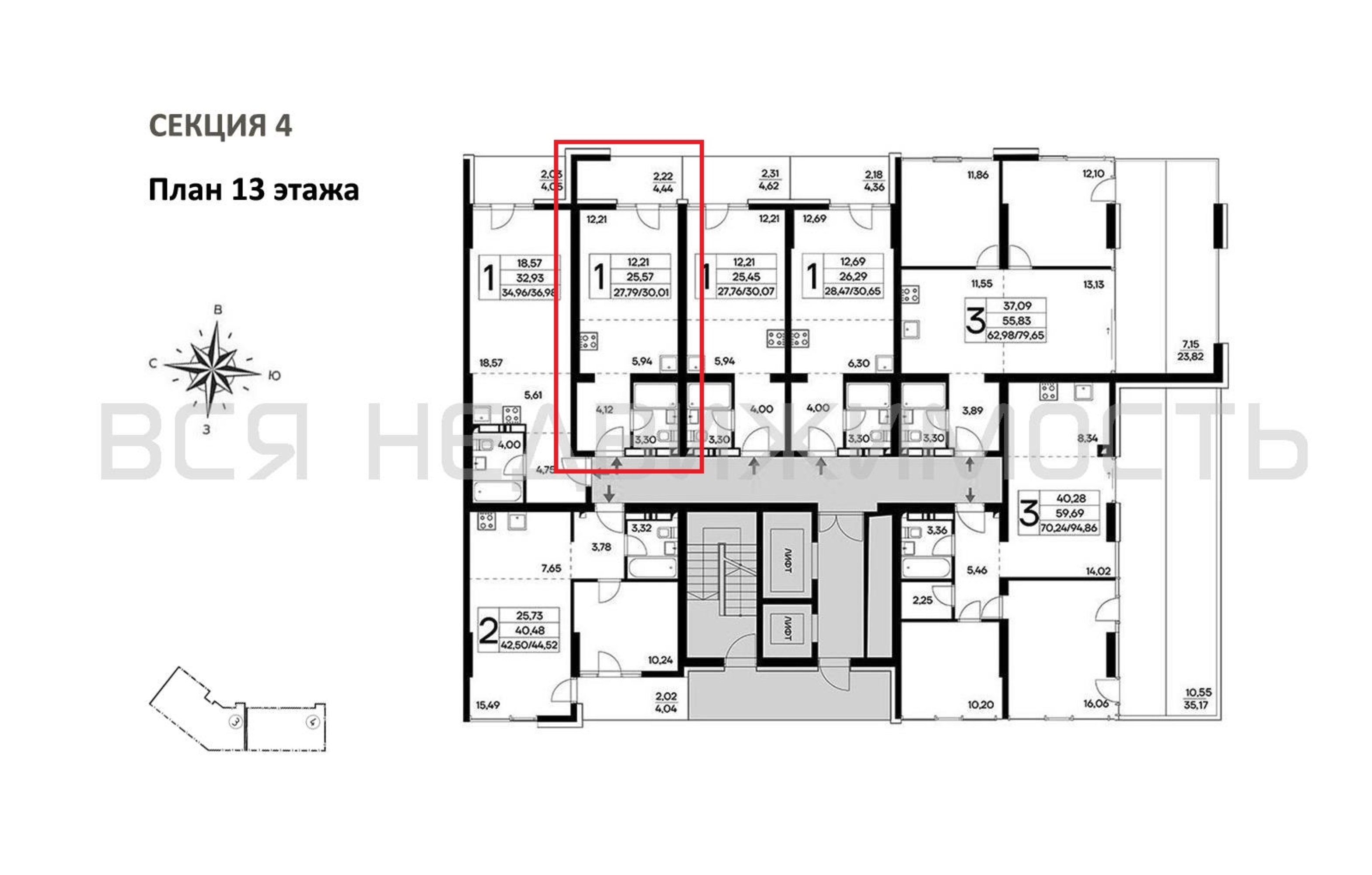 Квартиры-студии, 30.01 м² 13/14 этаж ID объекта 100120055