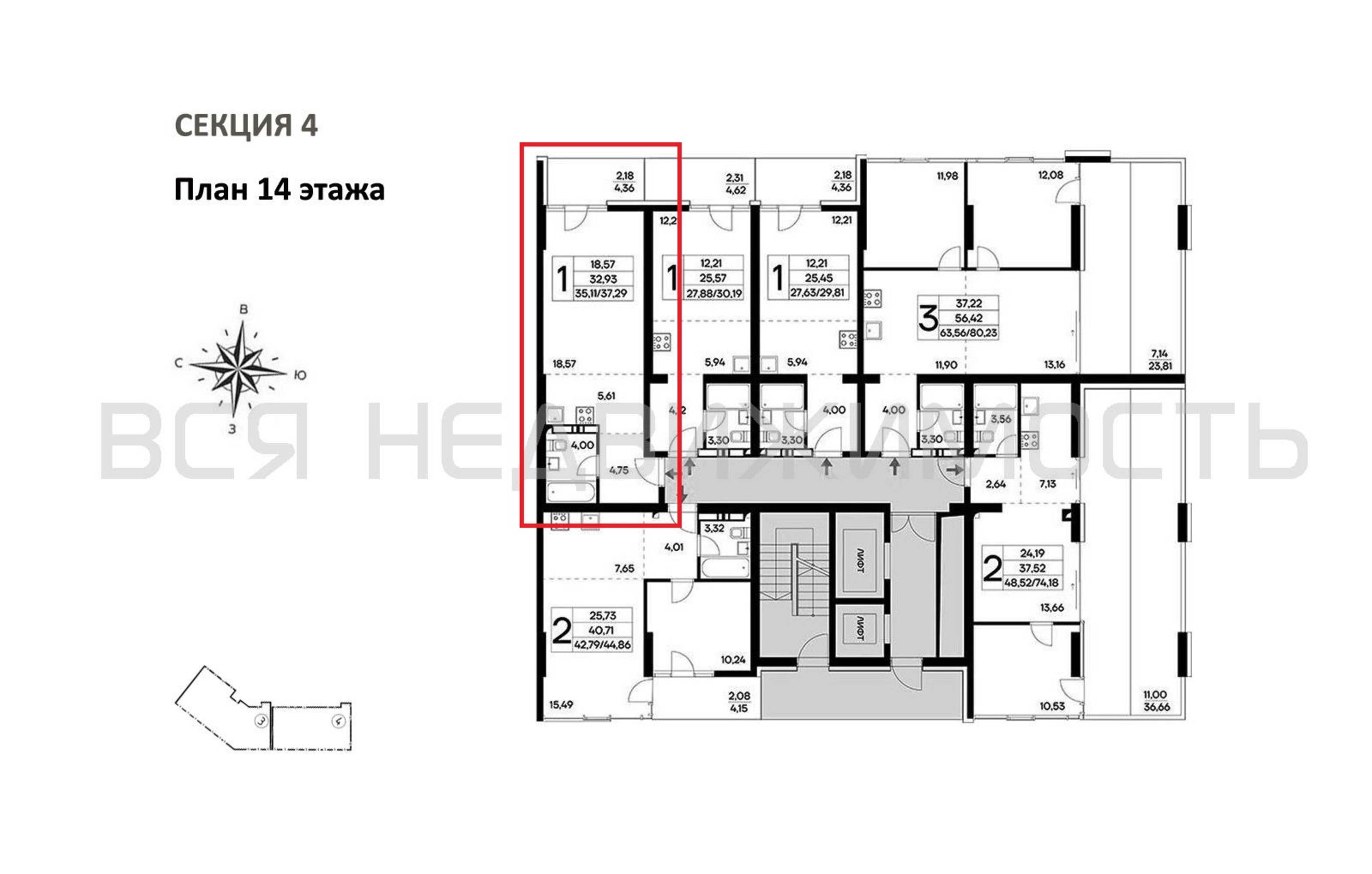 Квартиры-студии, 37.29 м² 14/14 этаж ID объекта 100120061
