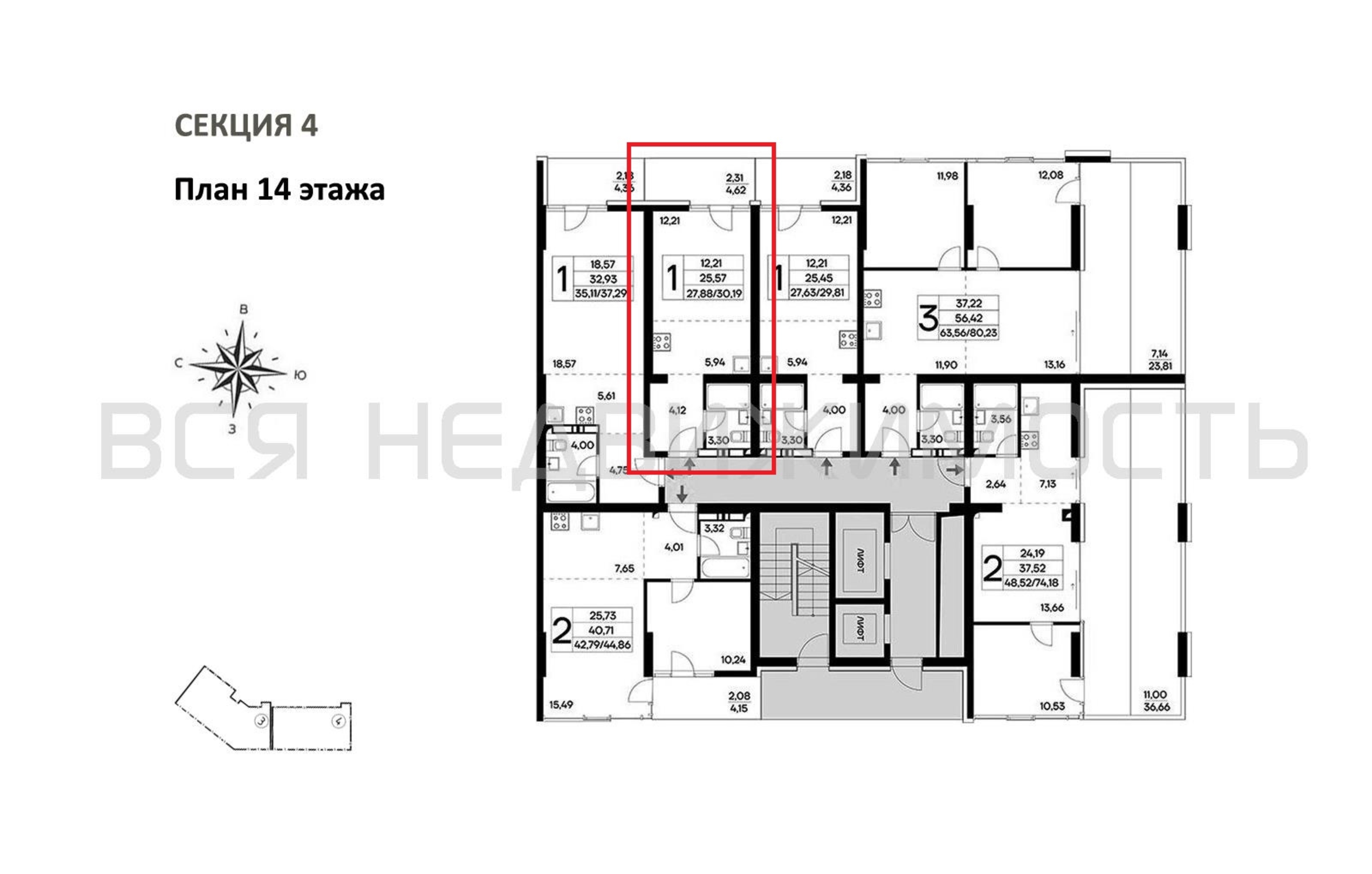 Квартиры-студии, 30.19 м² 14/14 этаж ID объекта 100120062