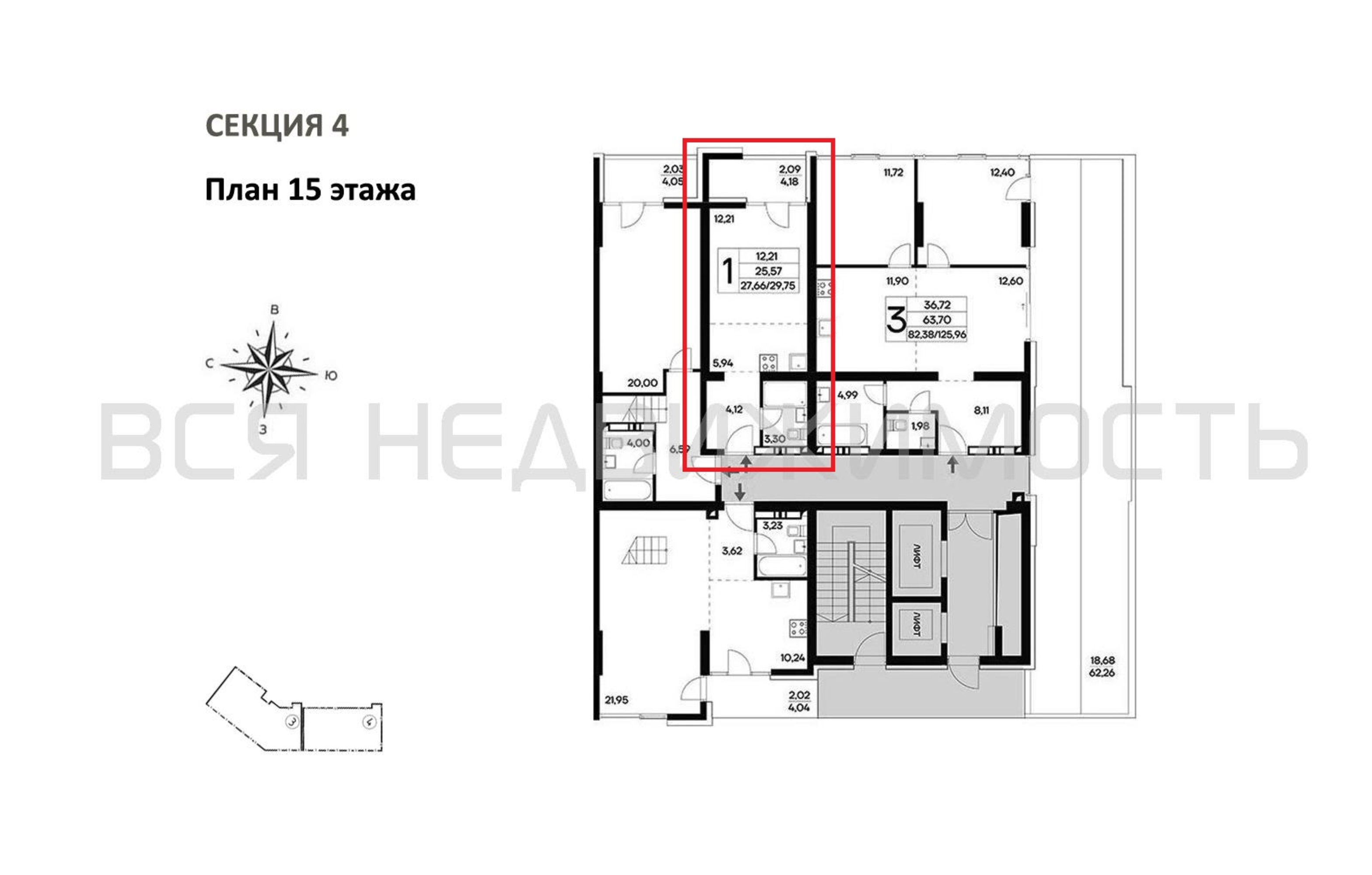 Общая площадь25.57 м²