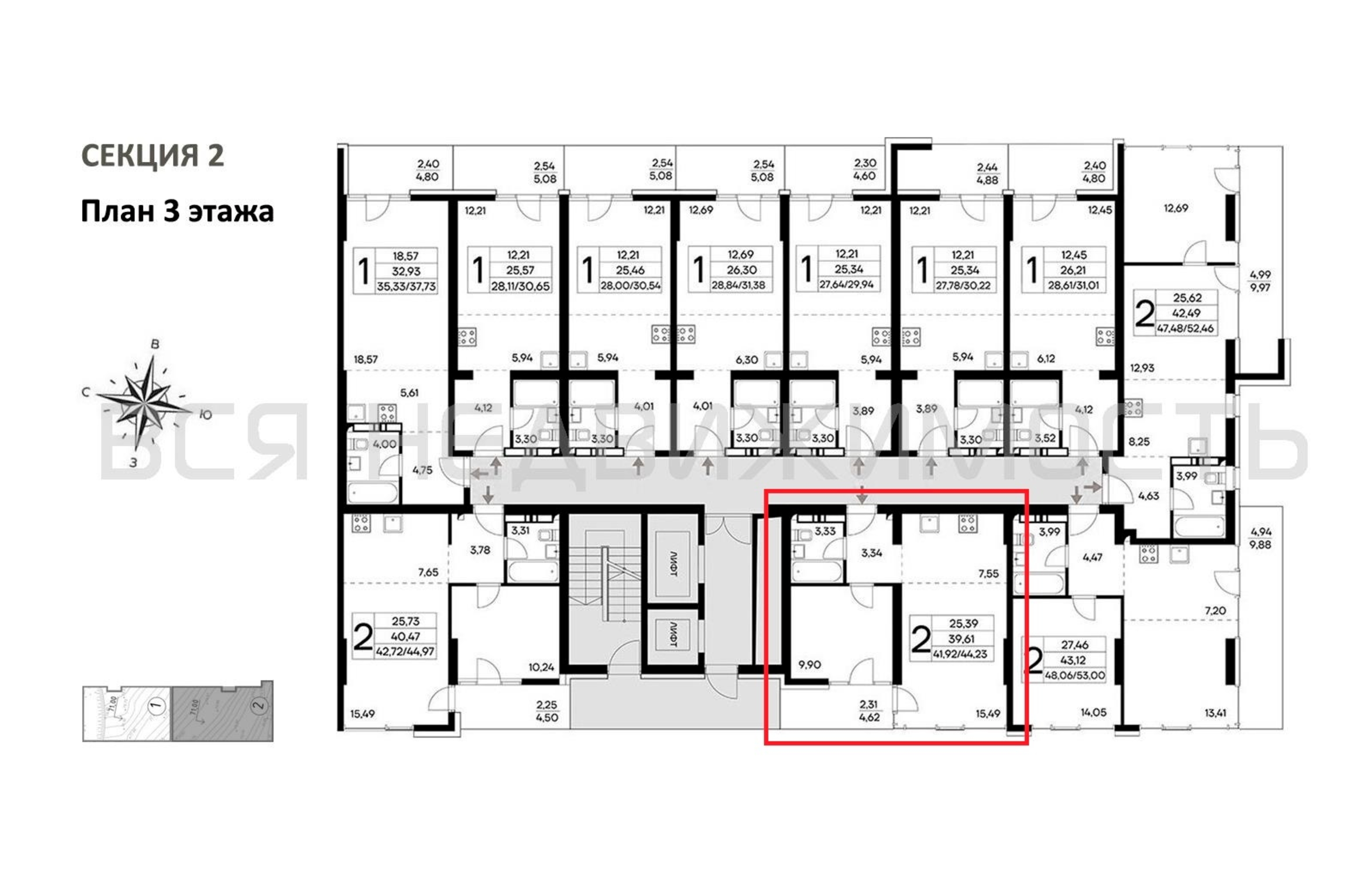 1-комнатная квартира, 44.23 м² 3/14 этаж ID объекта 100120090