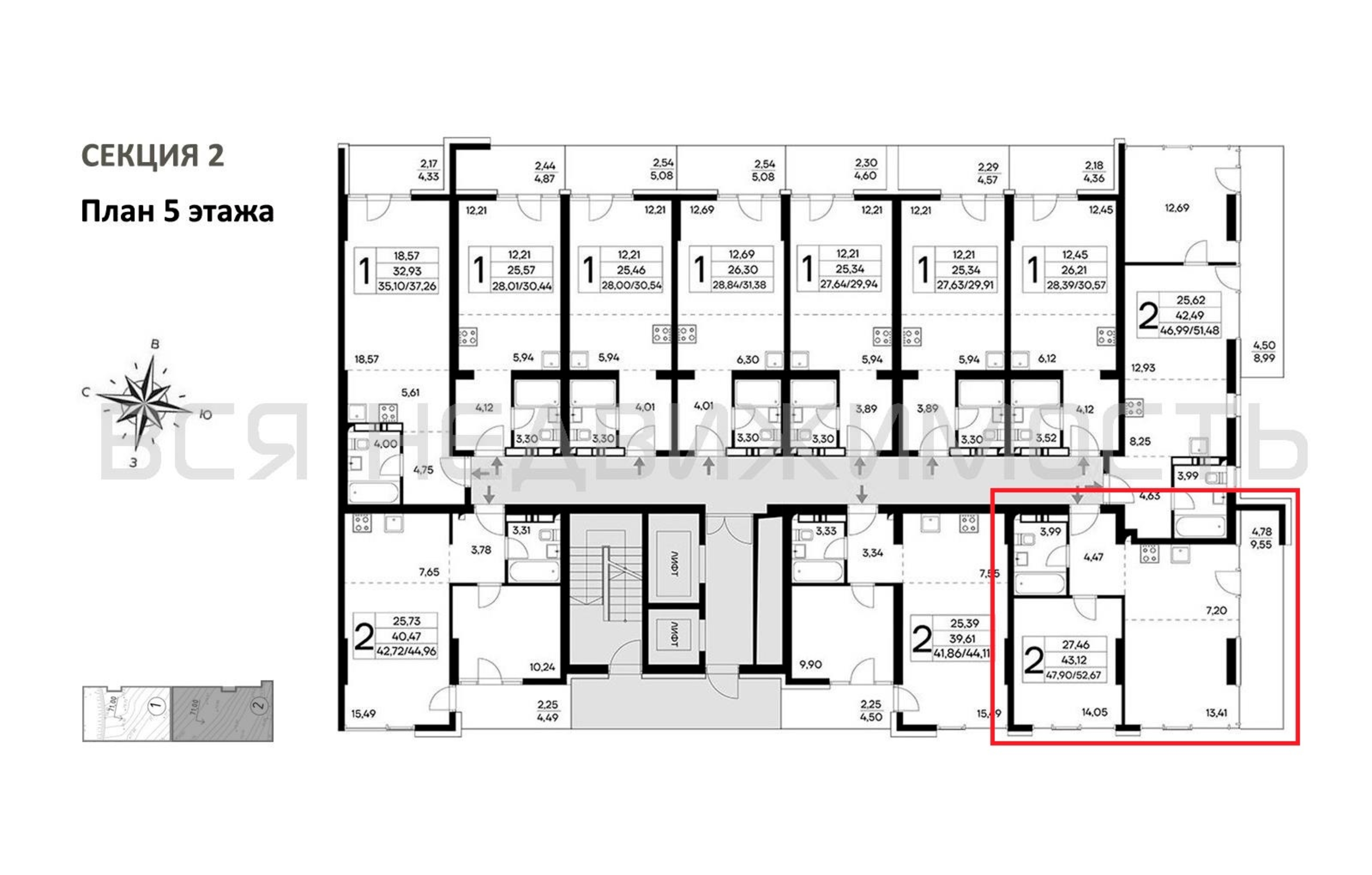 1-комнатная квартира, 52.67 м² 5/14 этаж ID объекта 100120111