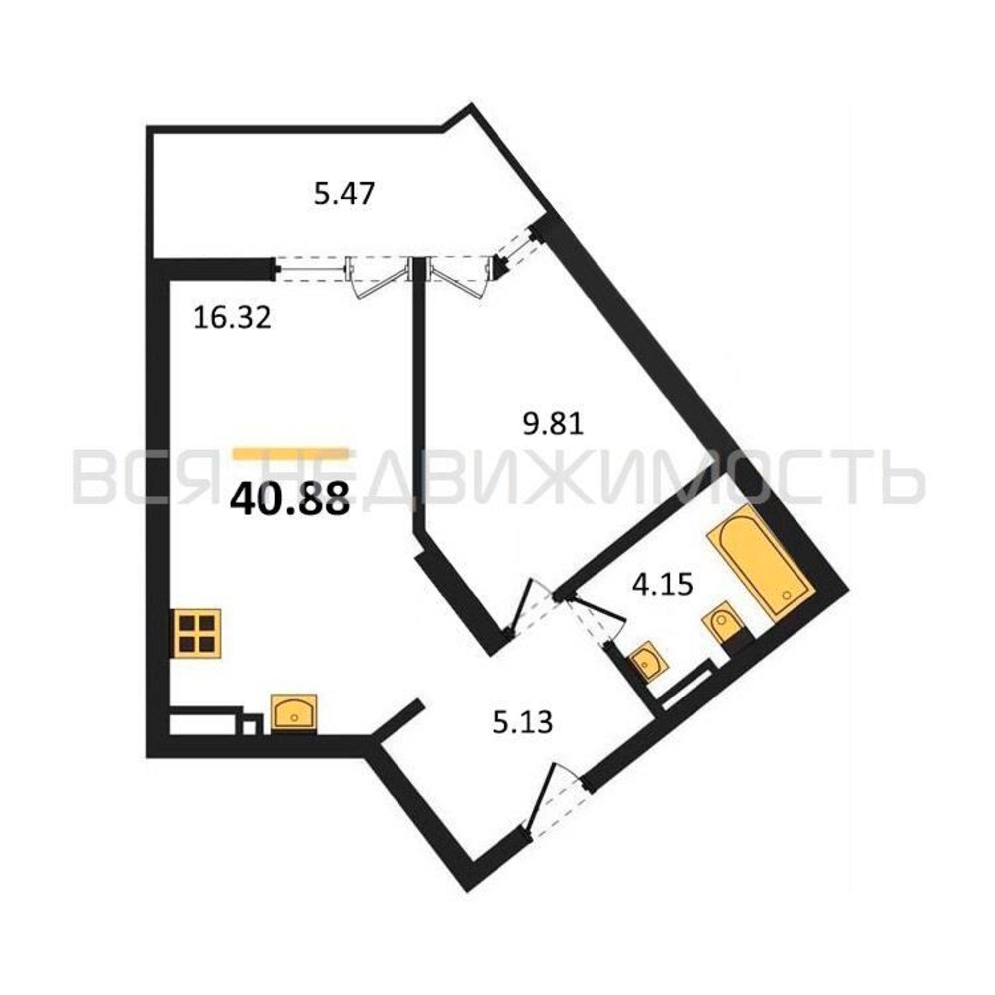 1-комнатная квартира, 40.88 м² 12/17 этаж ID объекта 100120334