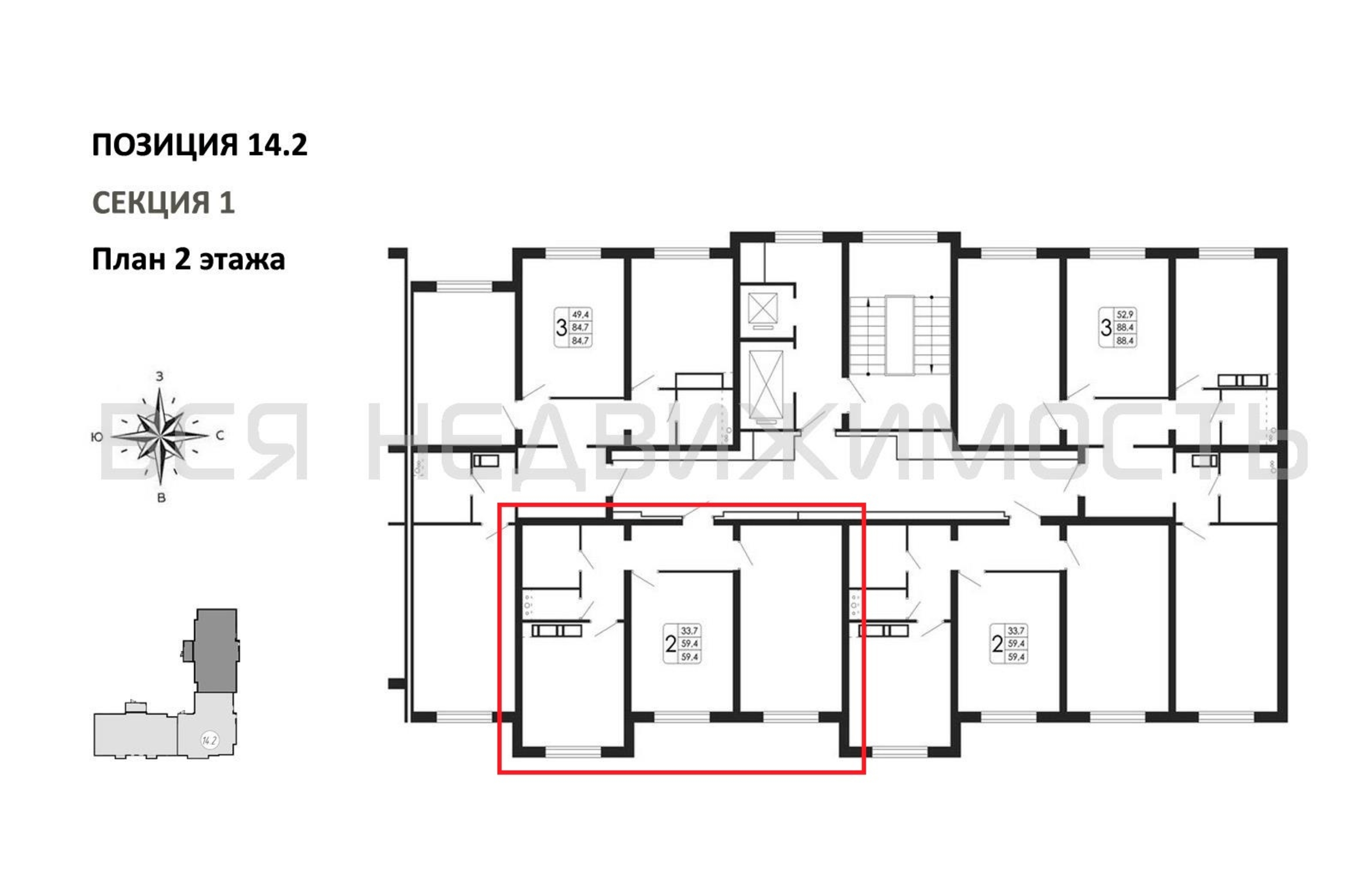 2-комнатная квартира, 59.40 м² 2/17 этаж ID объекта 100120395