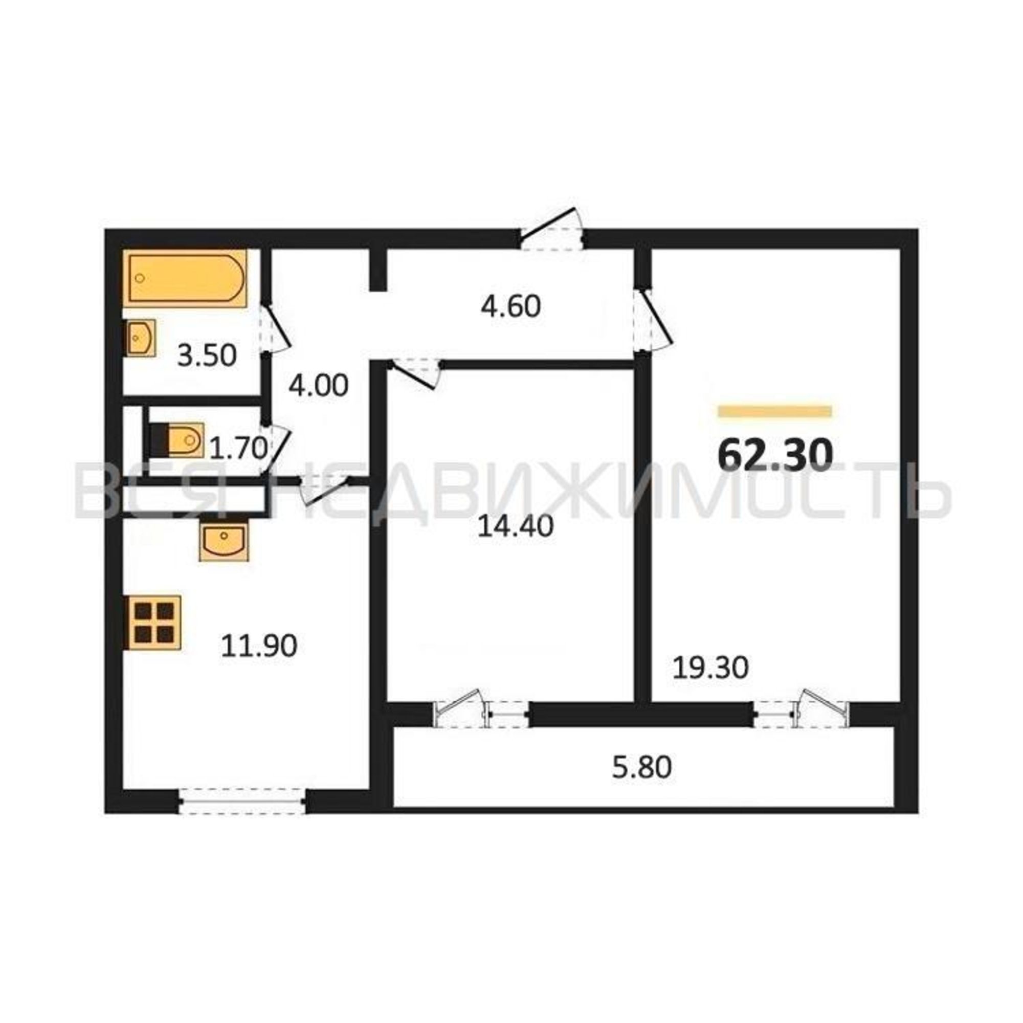 2-комнатная квартира, 62.30 м² 16/17 этаж ID объекта 100120451