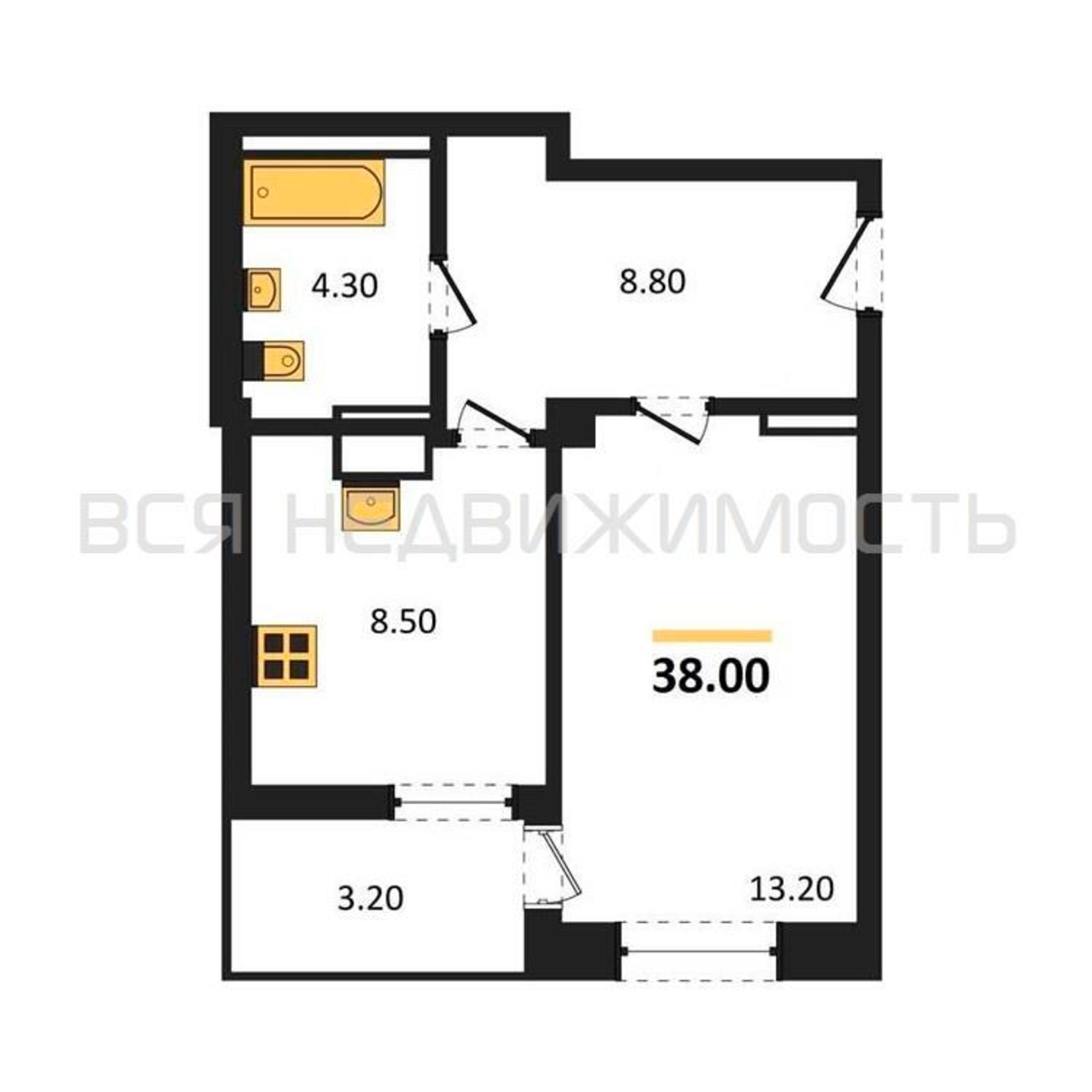 1-комнатная квартира, 38.00 м² 3/7 этаж ID объекта 100120761