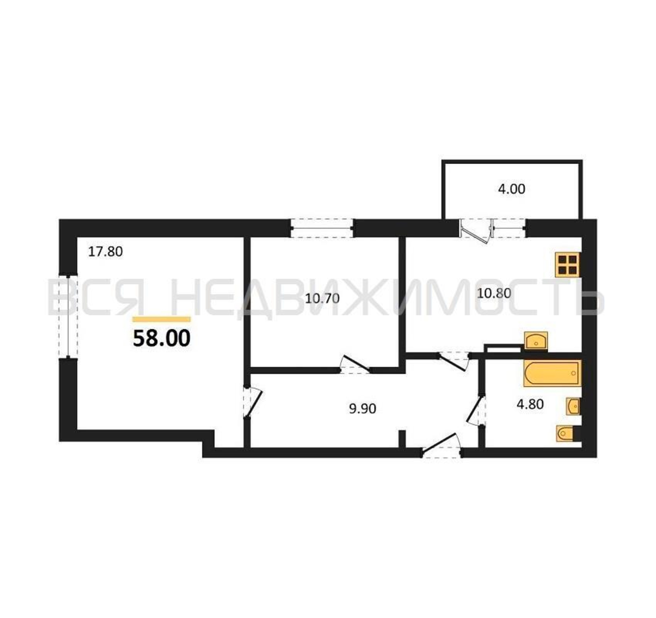 Строительная площадь58.00 м²
