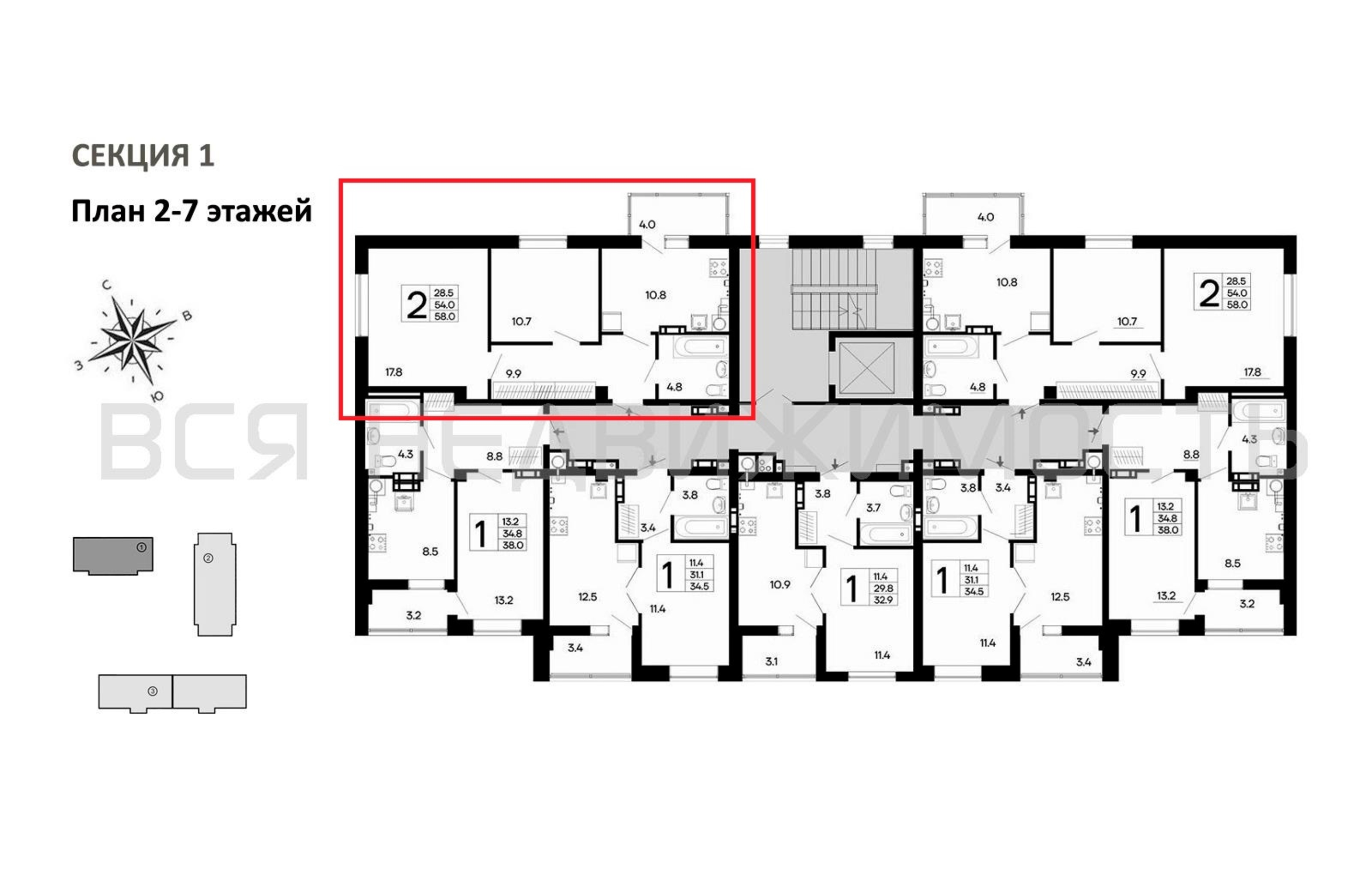 2-комнатная квартира, 58.00 м² 3/7 этаж ID объекта 100120762