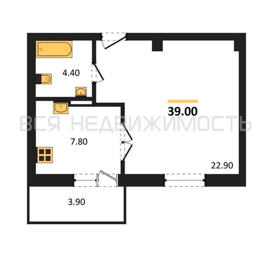 1-комнатная квартира, 39.00 м² 2/8 этаж ID объекта 100120868