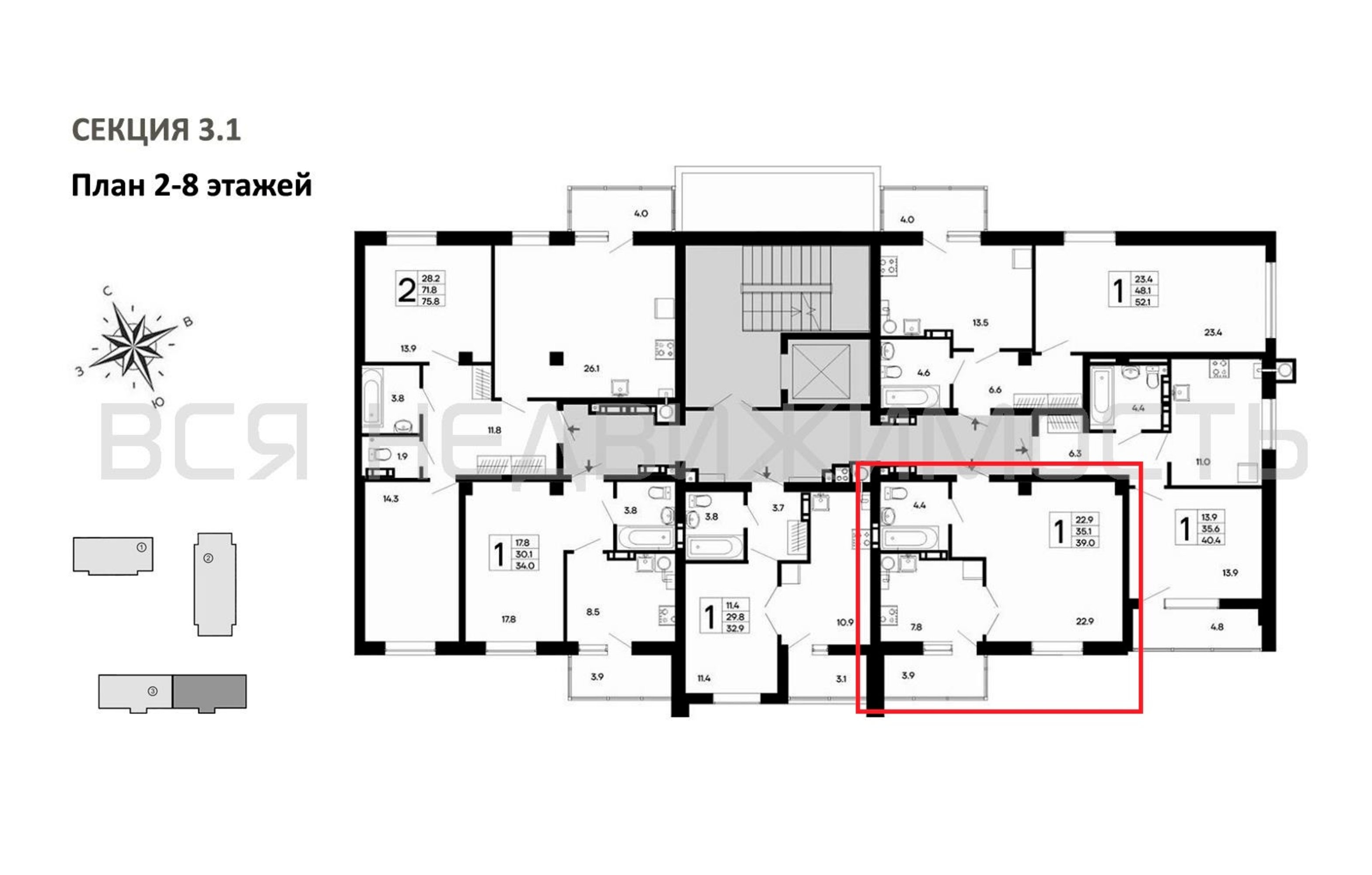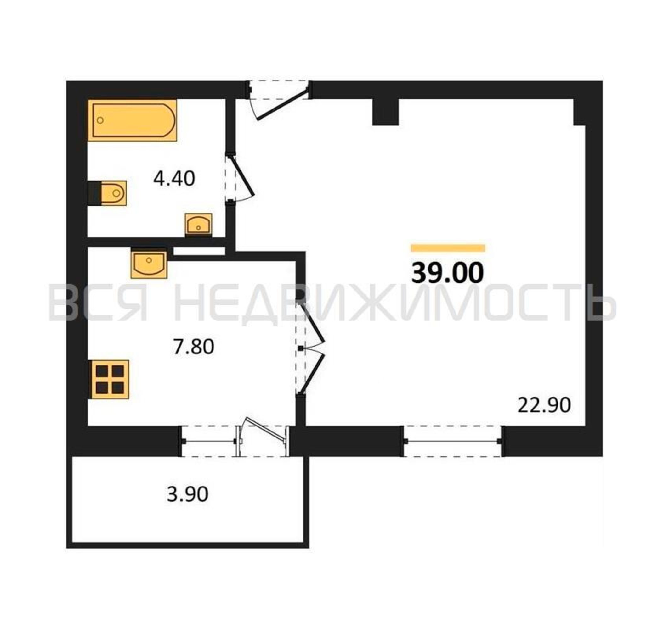1-комнатная квартира, 39.00 м² 3/8 этаж ID объекта 100120874