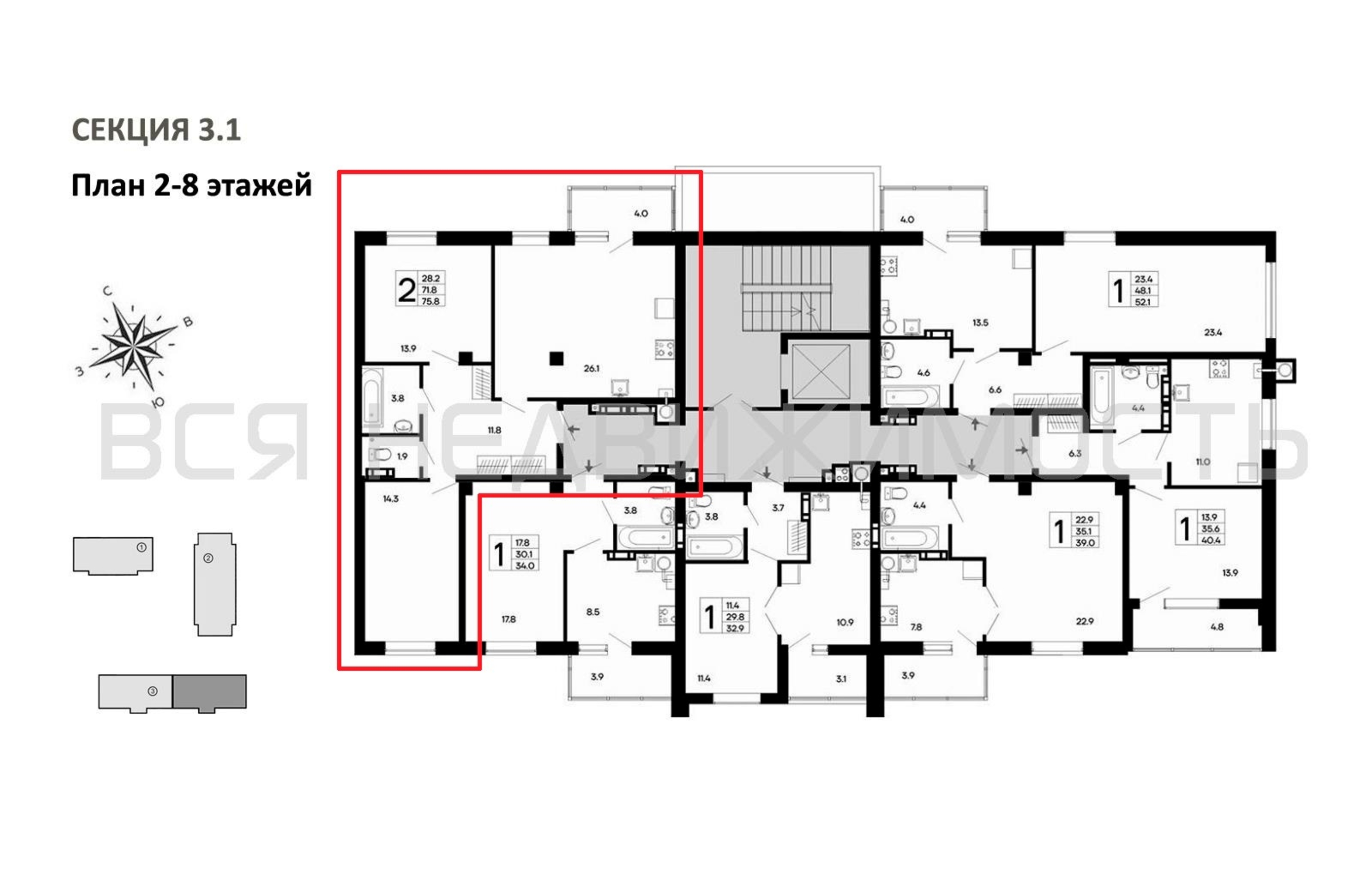 2-комнатная квартира, 75.80 м² 7/8 этаж ID объекта 100120901