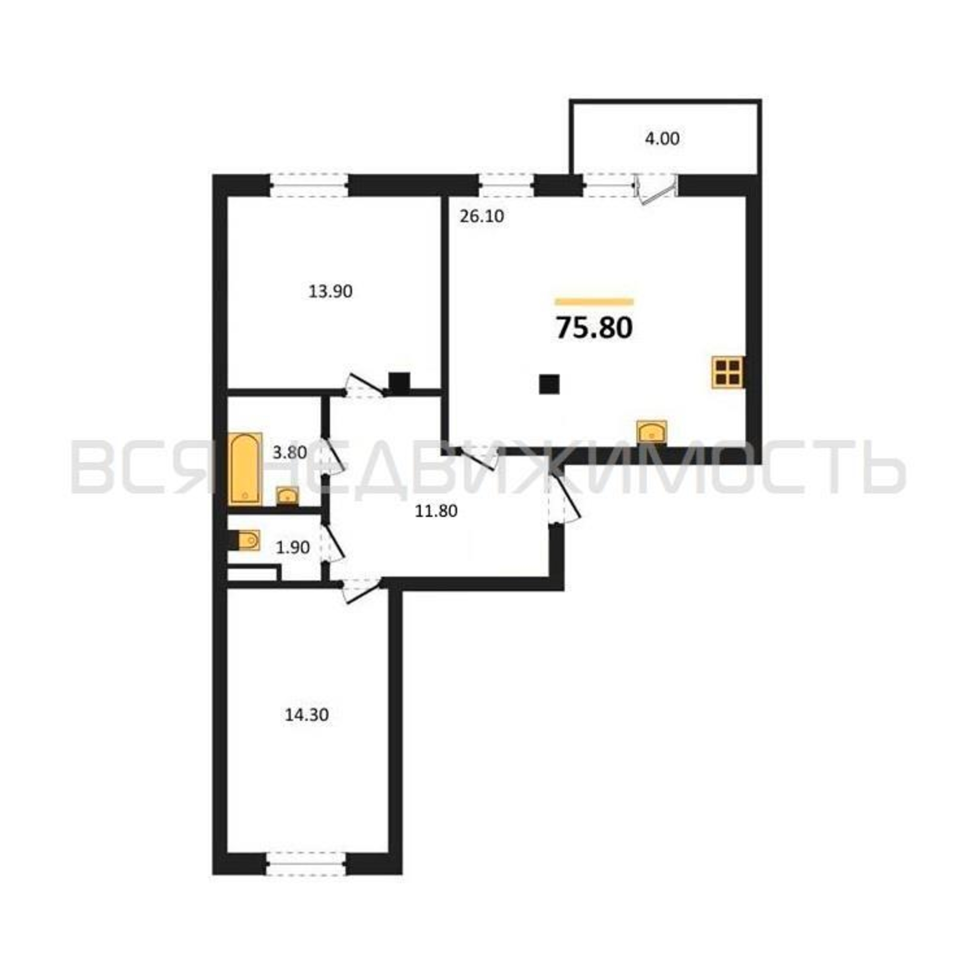 Строительная площадь75.80 м²