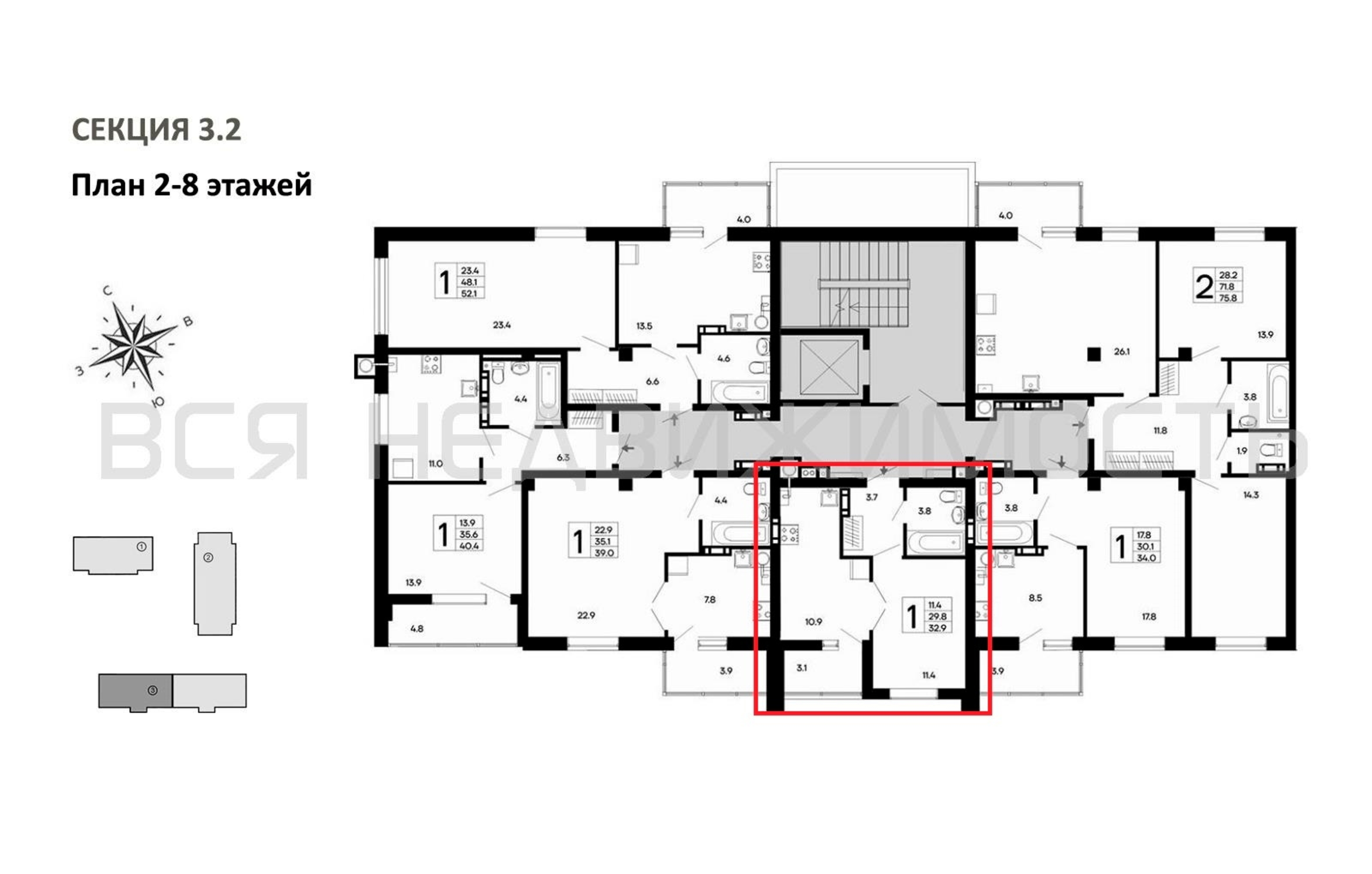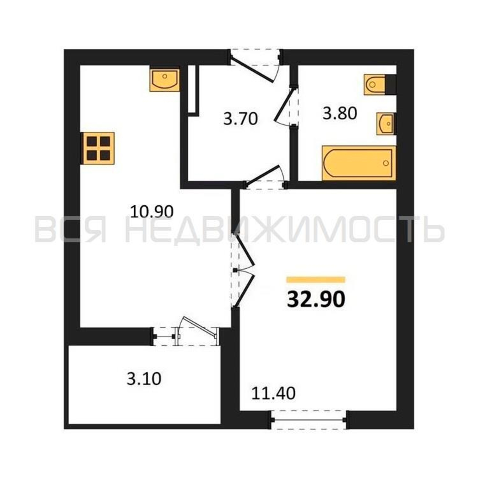 1-комнатная квартира, 32.90 м² 2/8 этаж ID объекта 100120915