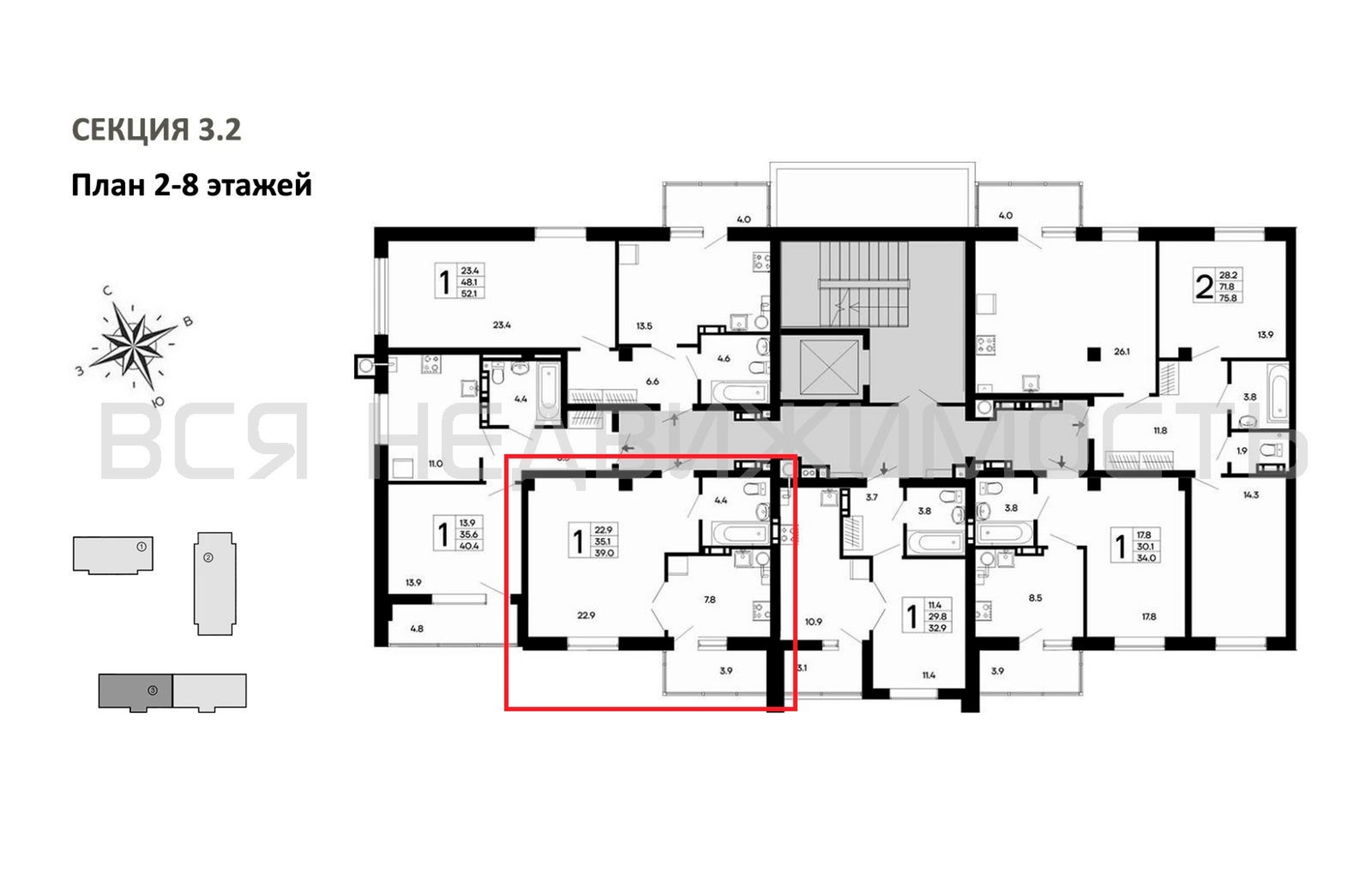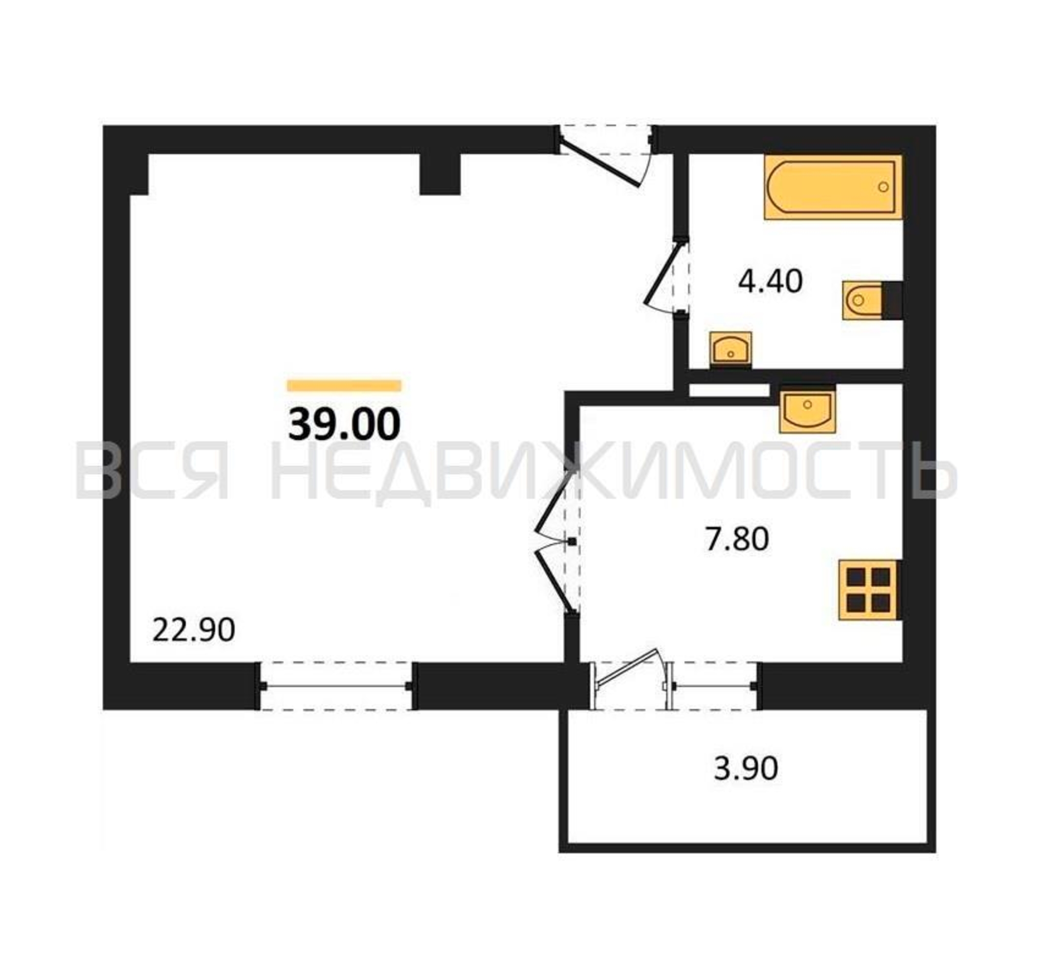 1-комнатная квартира, 39.00 м² 3/8 этаж ID объекта 100120922
