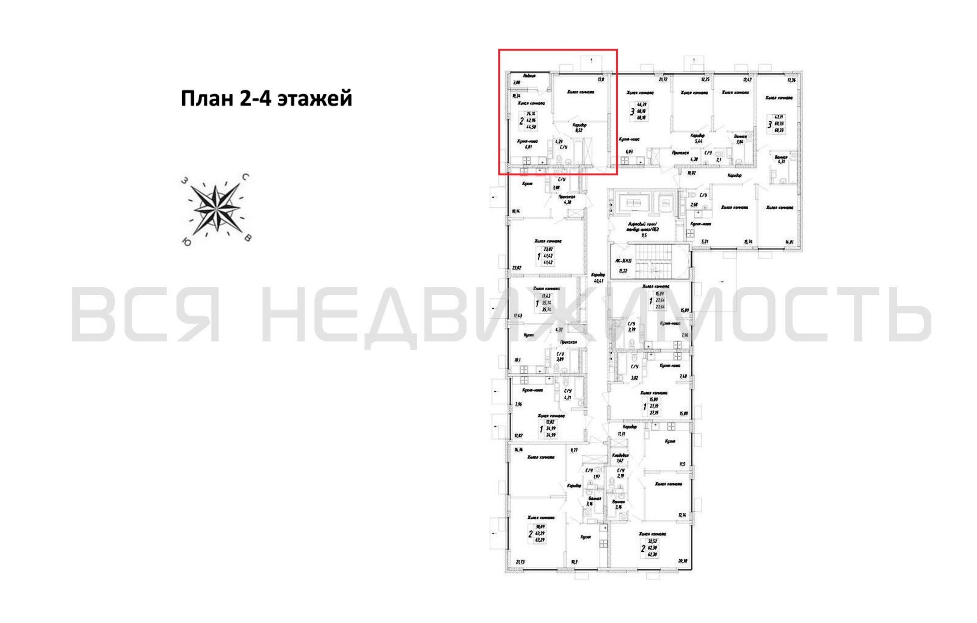 1-комнатная квартира, 44.50 м² 2/17 этаж ID объекта 100121060