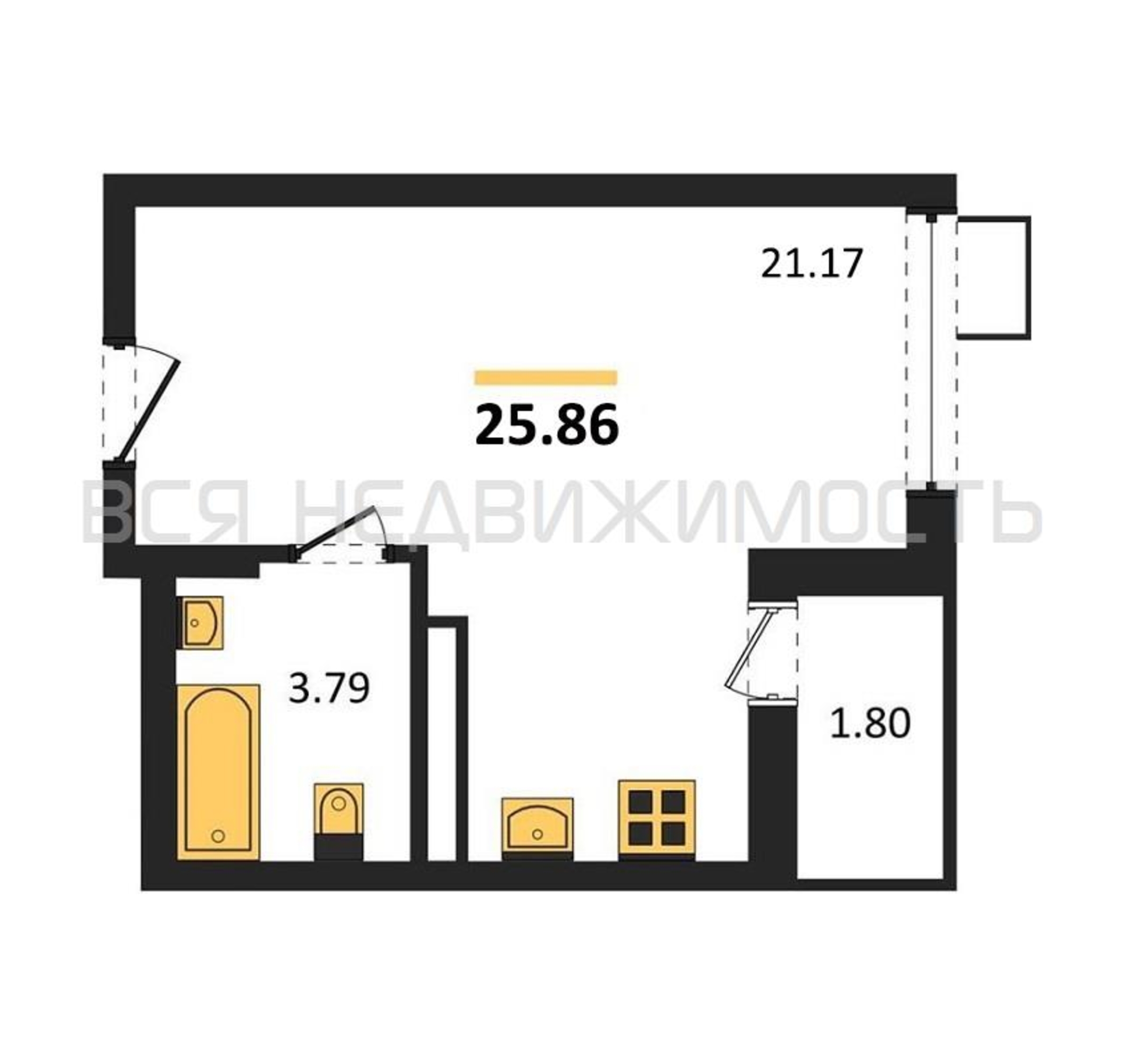 Квартиры-студии, 25.86 м² 7/17 этаж ID объекта 100121103