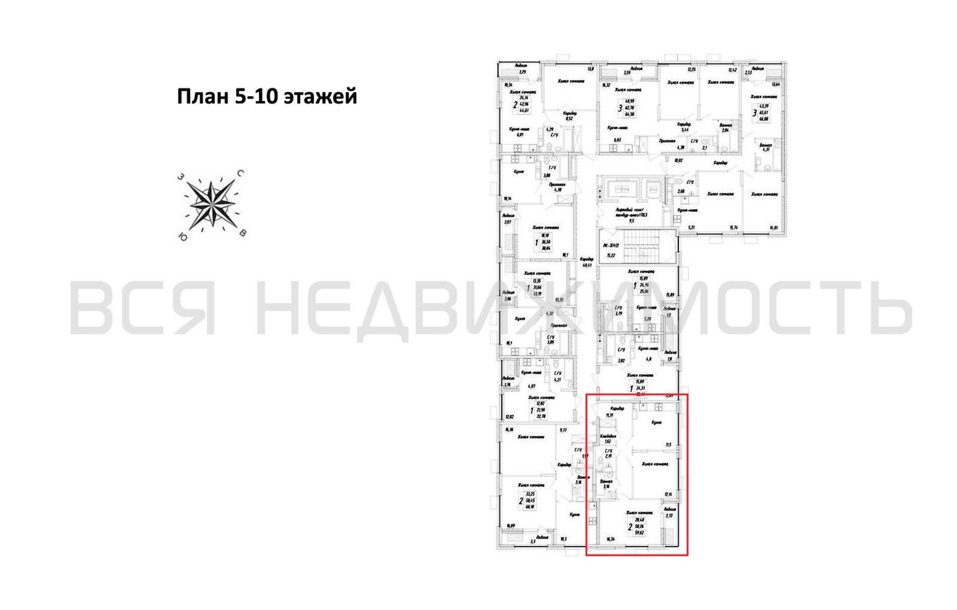 2-комнатная квартира, 59.62 м² 10/17 этаж ID объекта 100121135