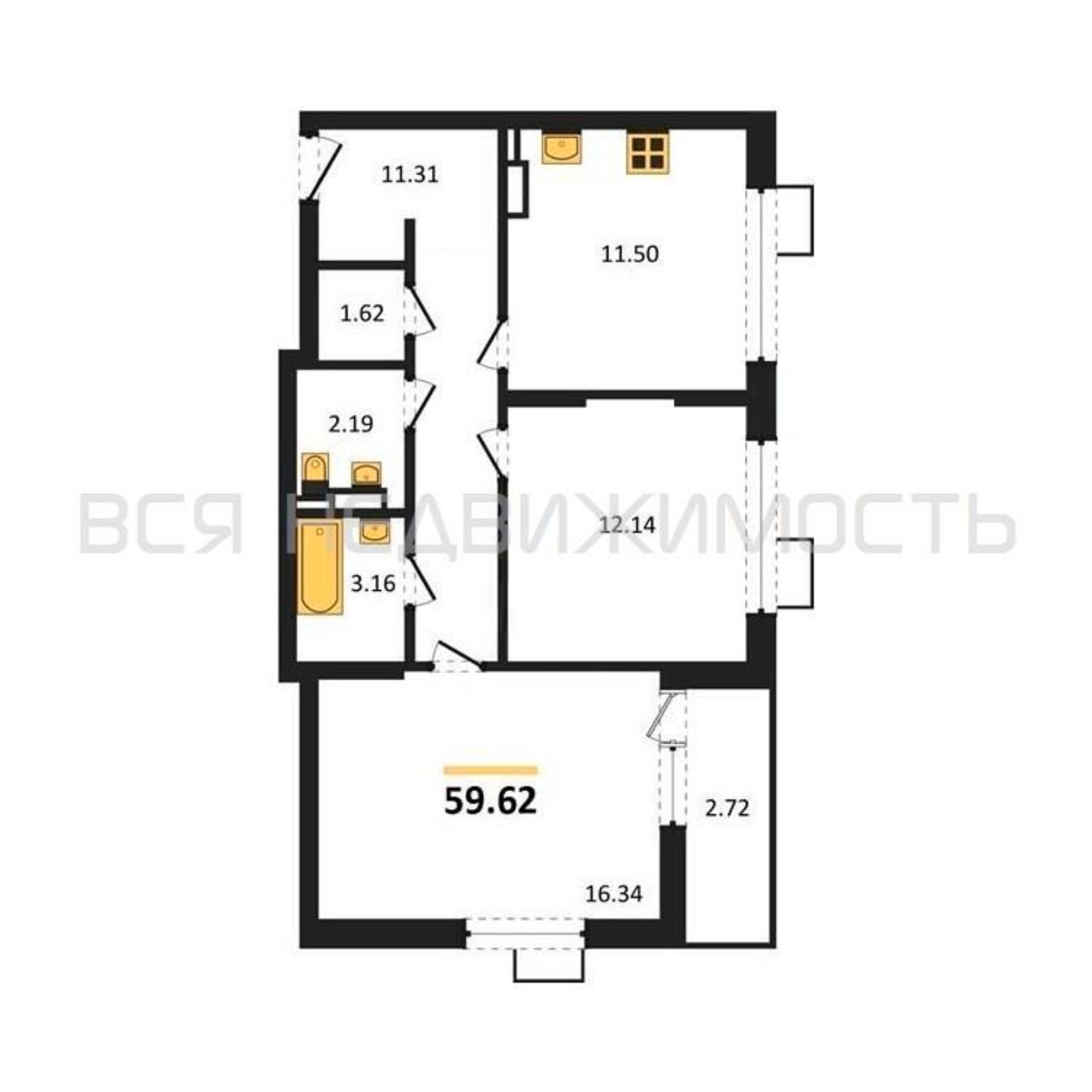 Строительная площадь59.62 м²