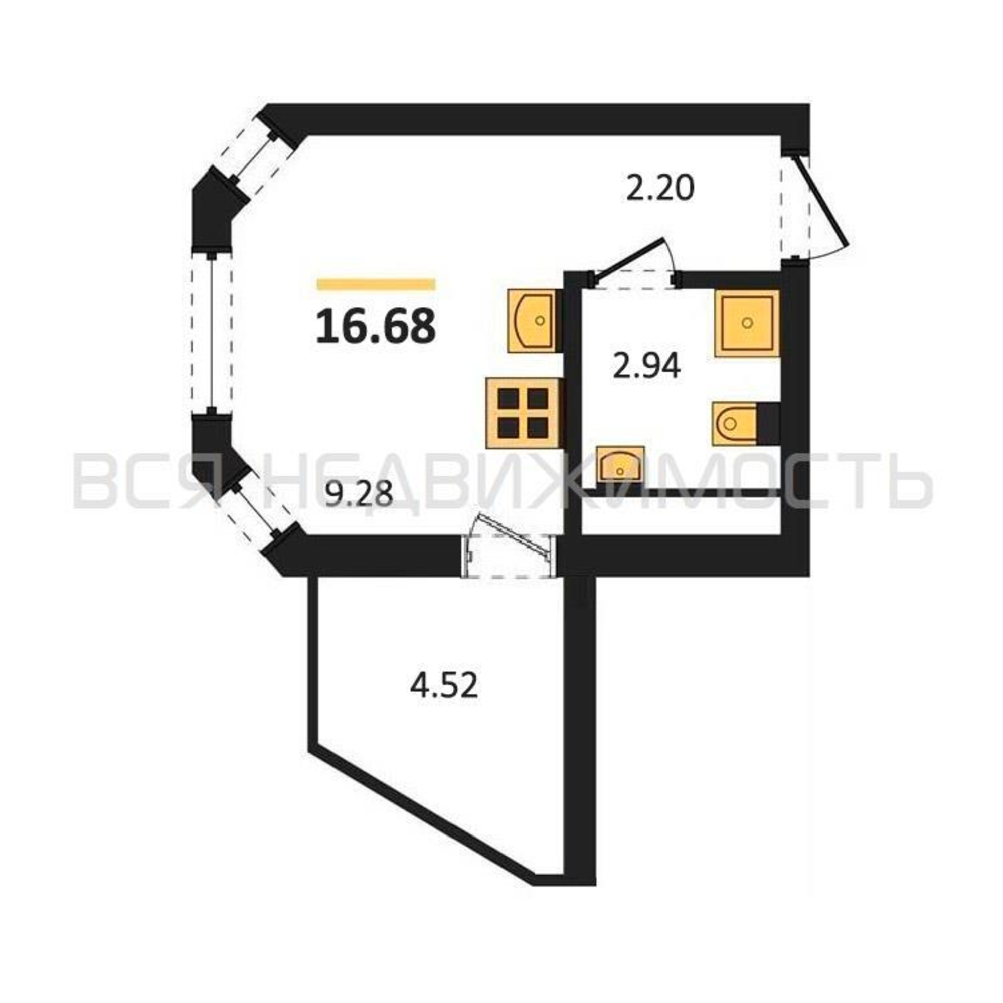 Строительная площадь16.68 м²