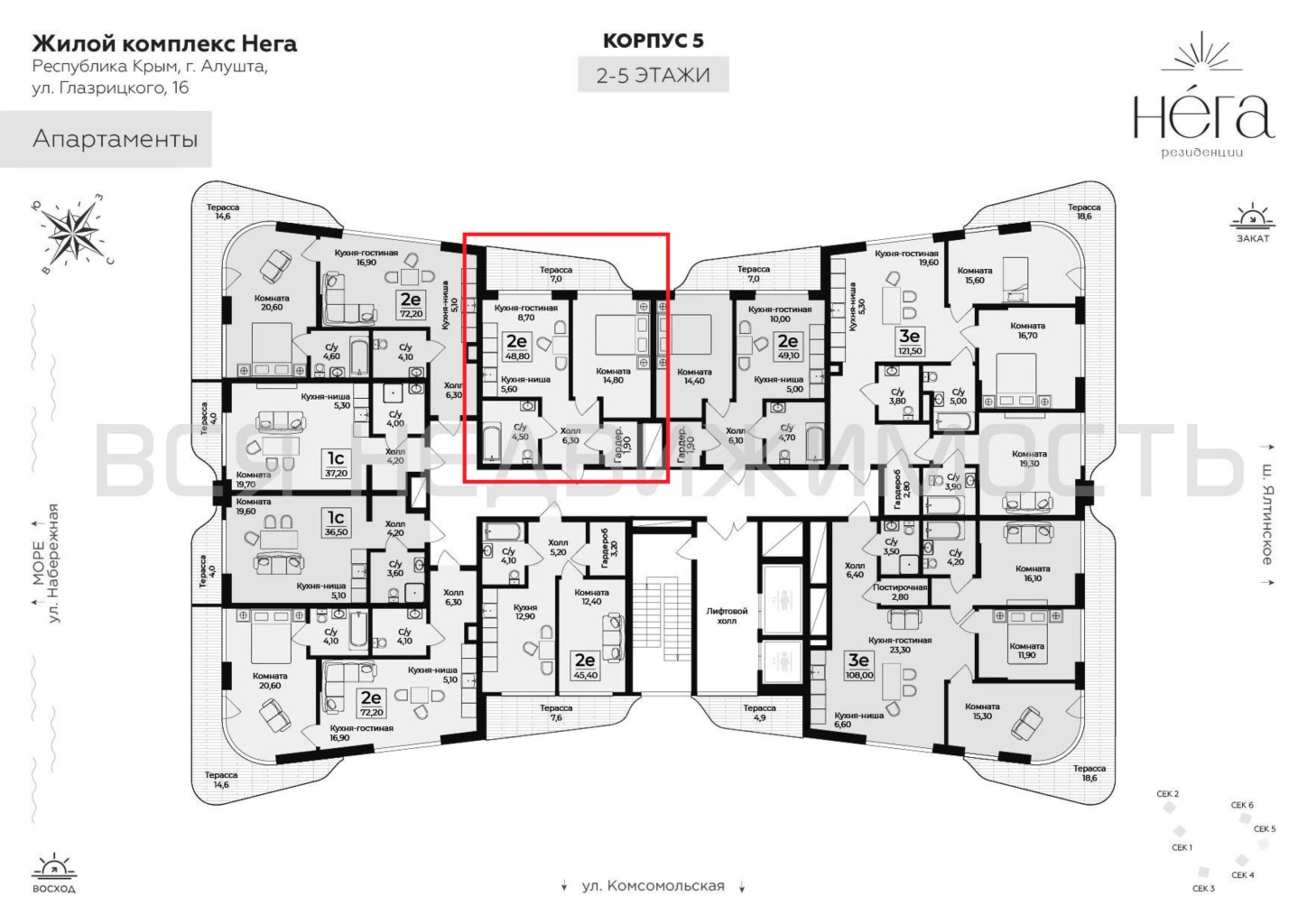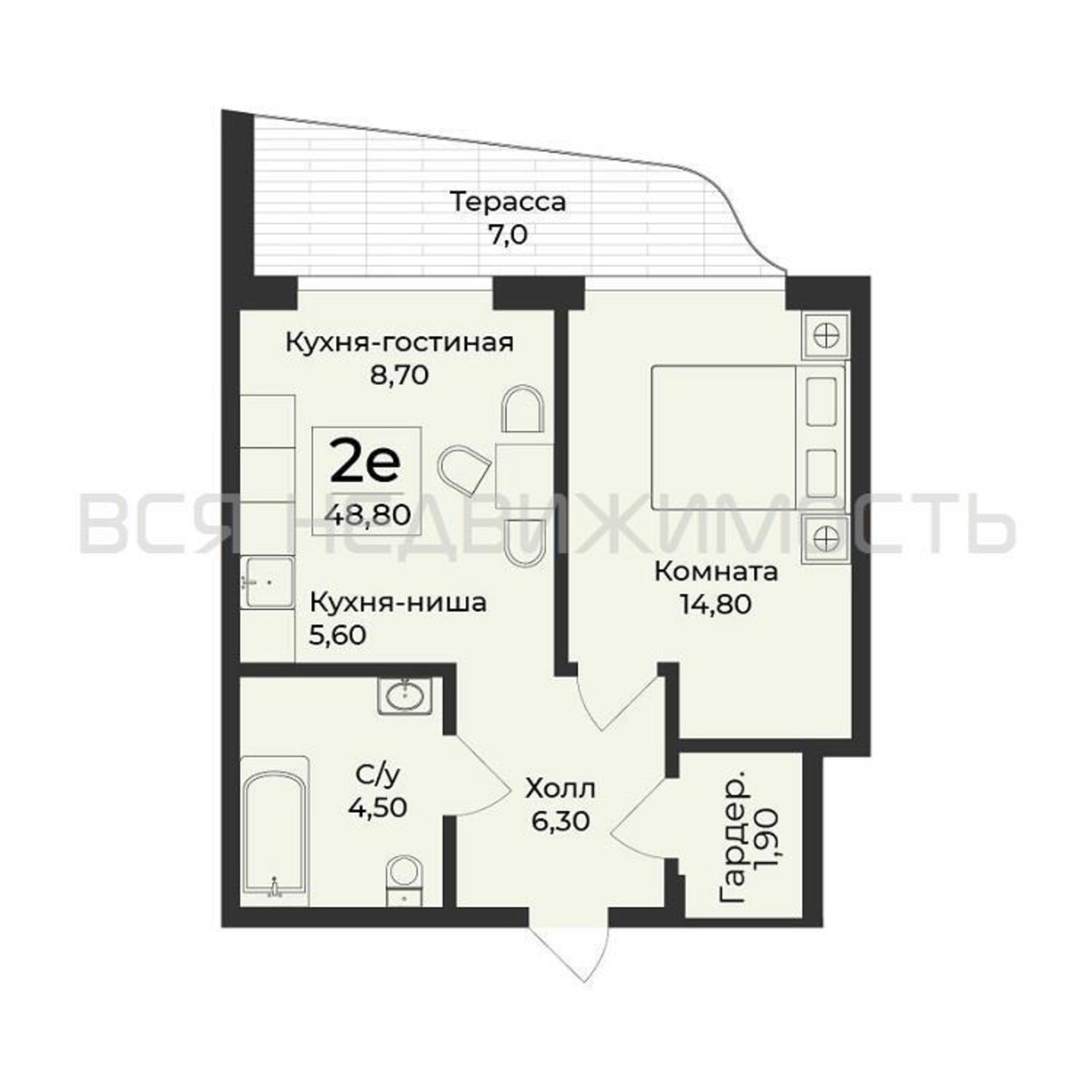 1-комнатная квартира, 48.80 м² 4/6 этаж ID объекта 100121325