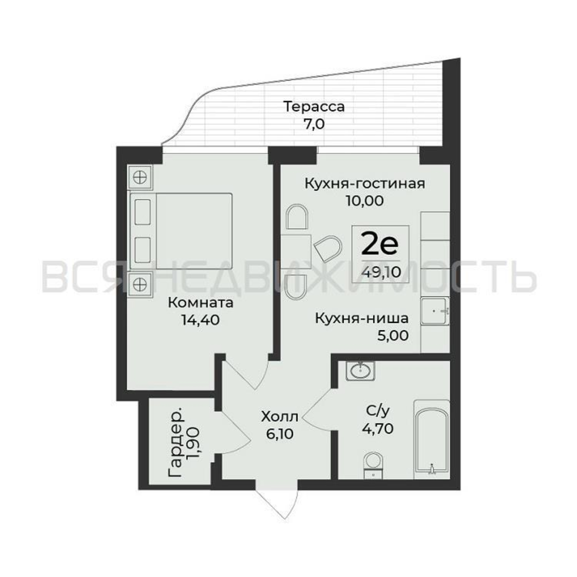 1-комнатная квартира, 49.10 м² 5/6 этаж ID объекта 100121335