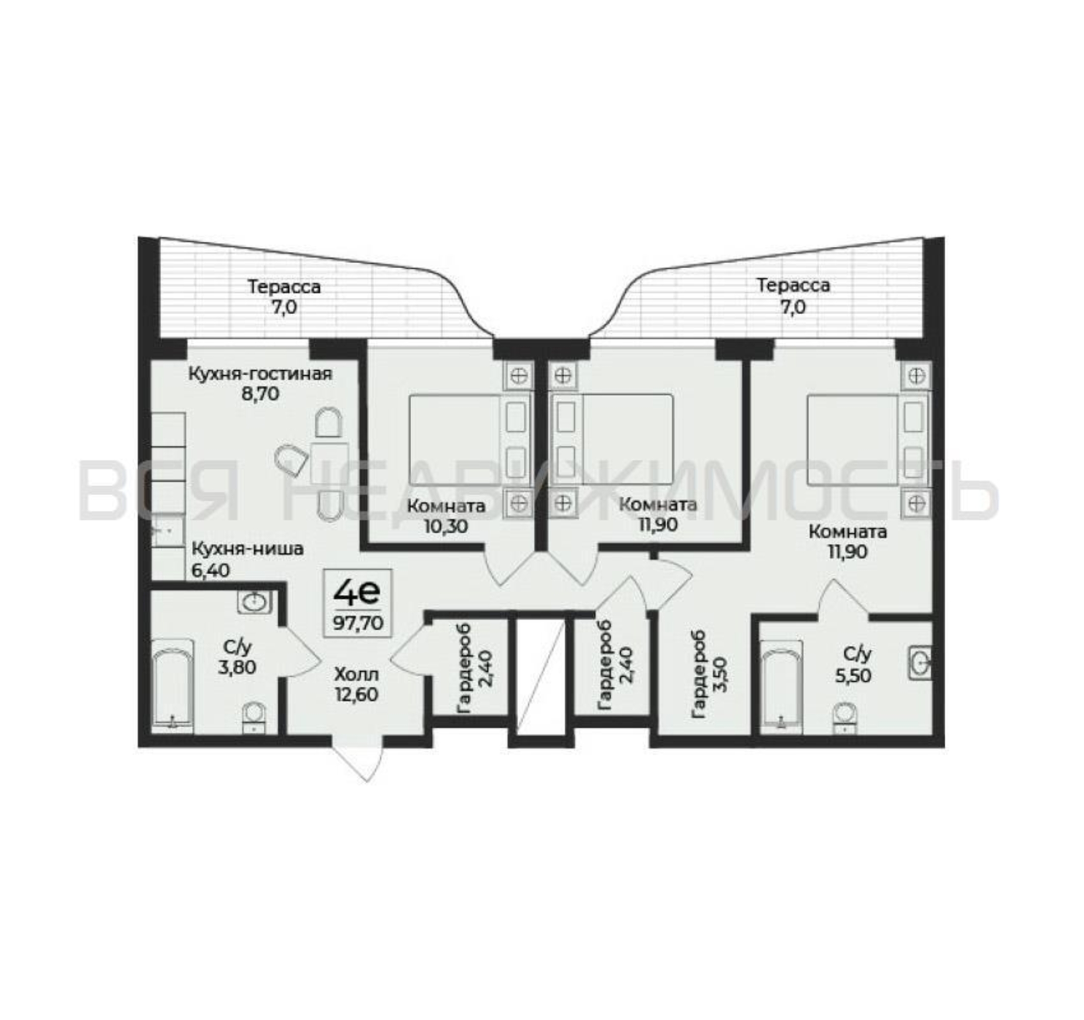 4-комнатная квартира, 97.70 м² 6/6 этаж ID объекта 100121341