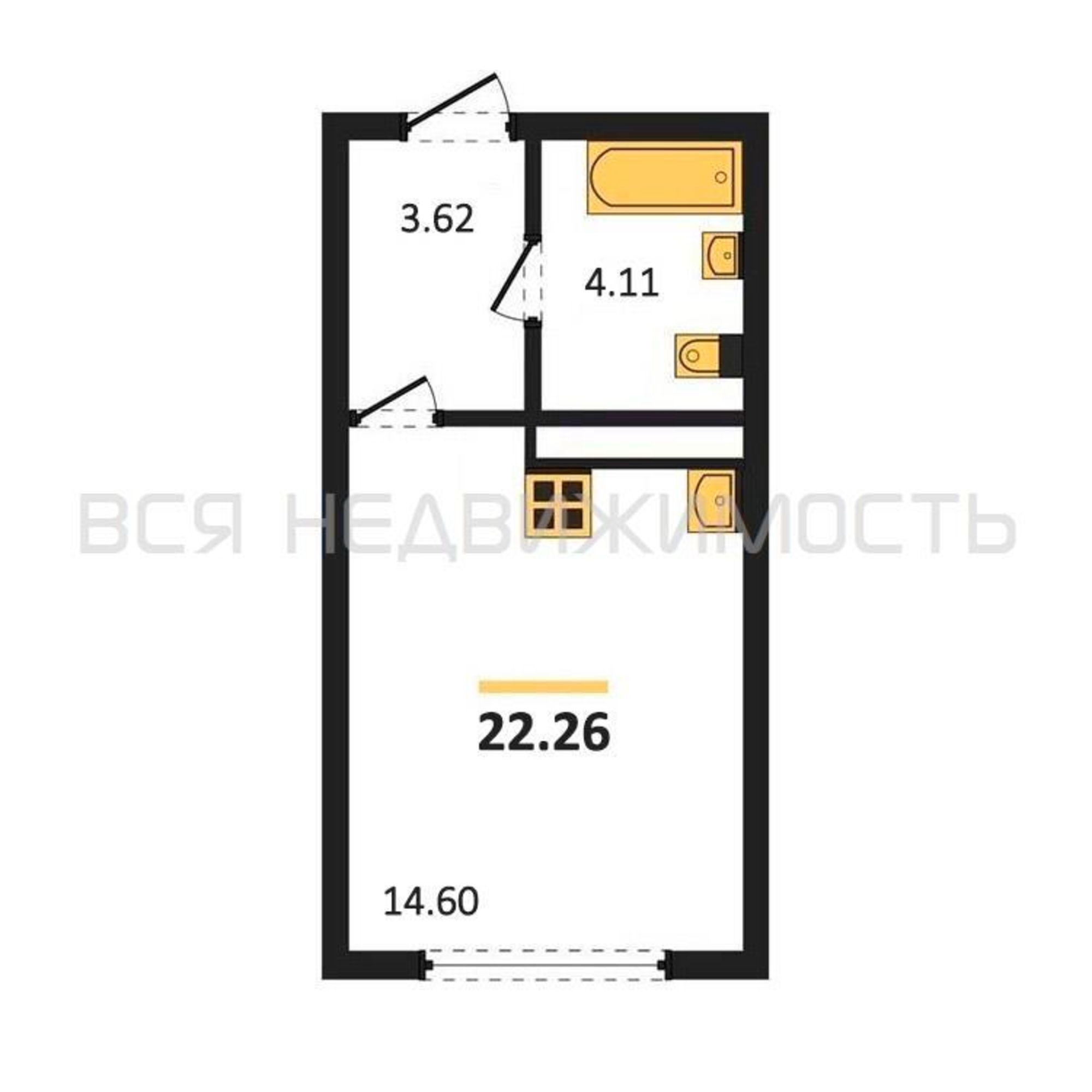 Квартиры-студии, 22.26 м² 8/15 этаж ID объекта 100121390