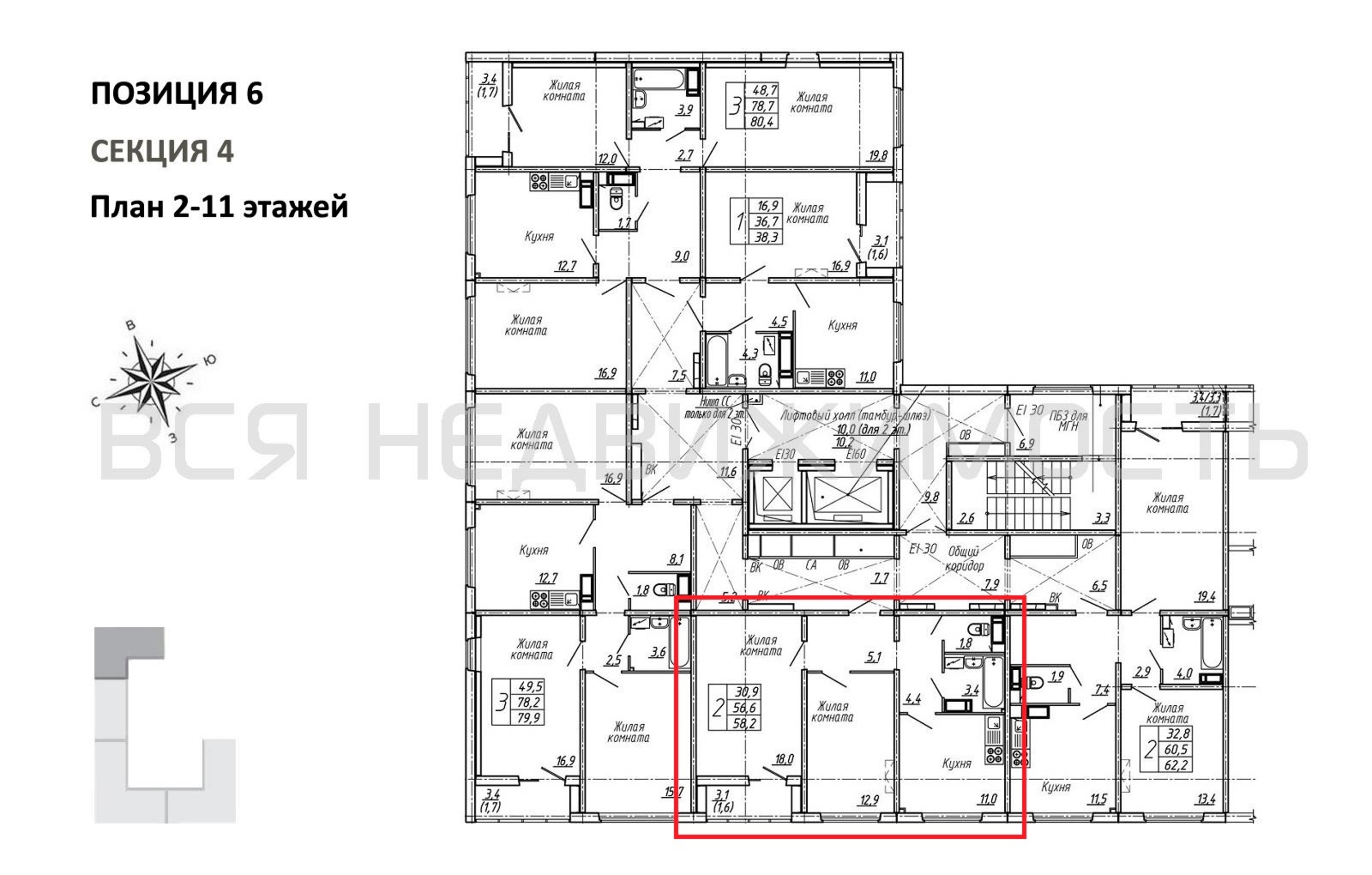 Общая площадь56.60 м²