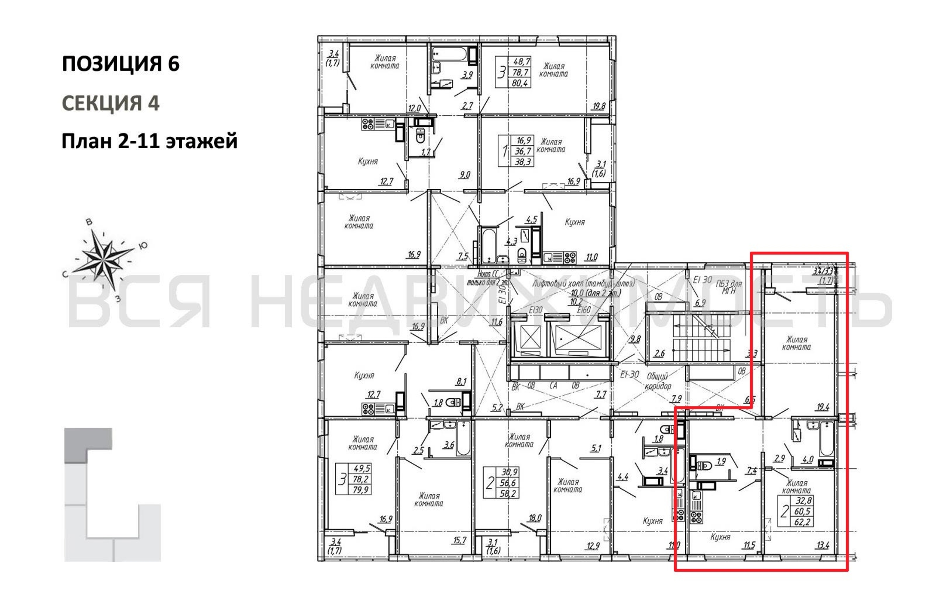 2-комнатная квартира, 62.20 м² 11/13 этаж ID объекта 100122482