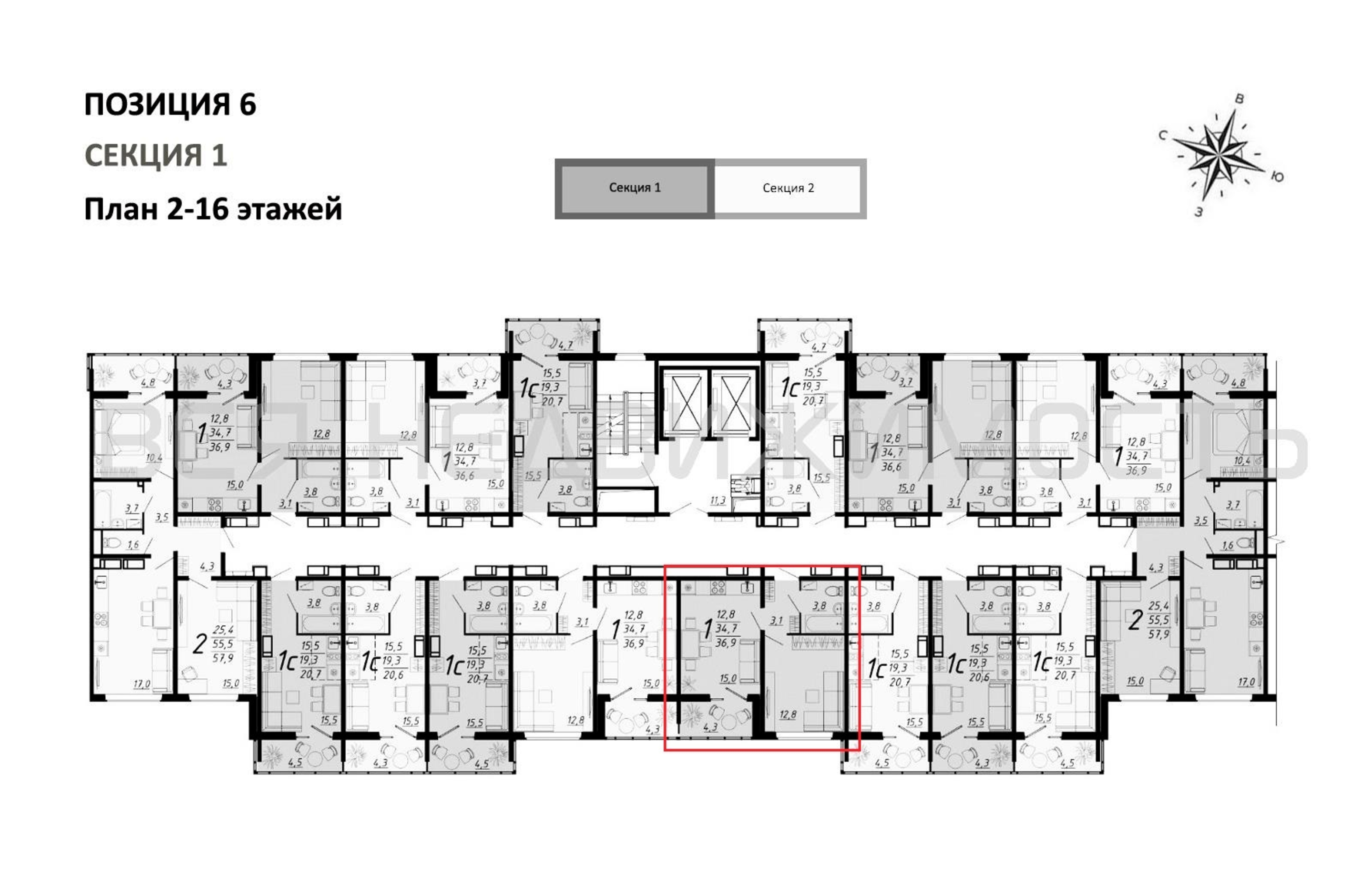 1-комнатная квартира, 36.90 м² 2/17 этаж ID объекта 100122849
