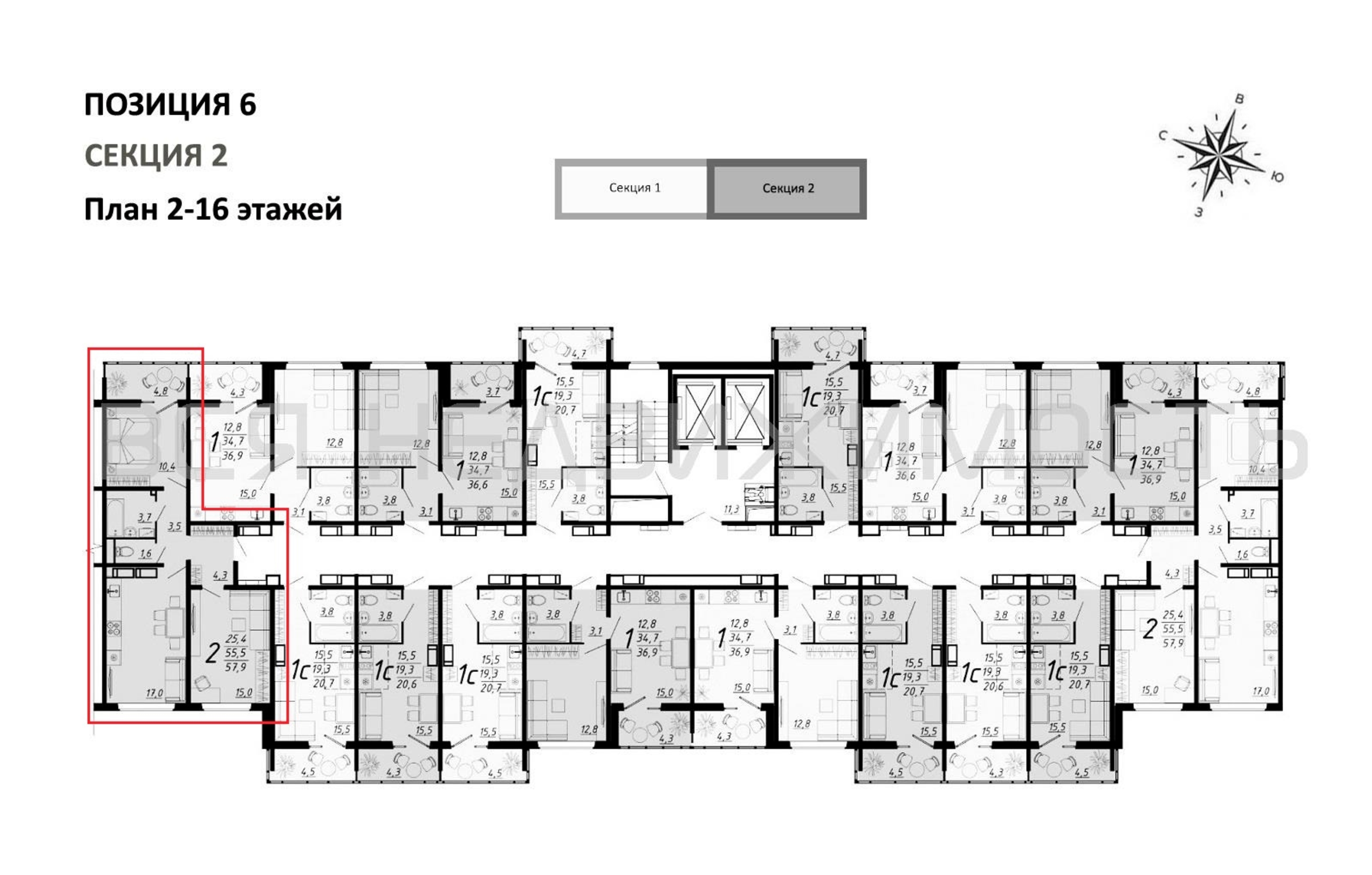 2-комнатная квартира, 57.90 м² 2/17 этаж ID объекта 100123125