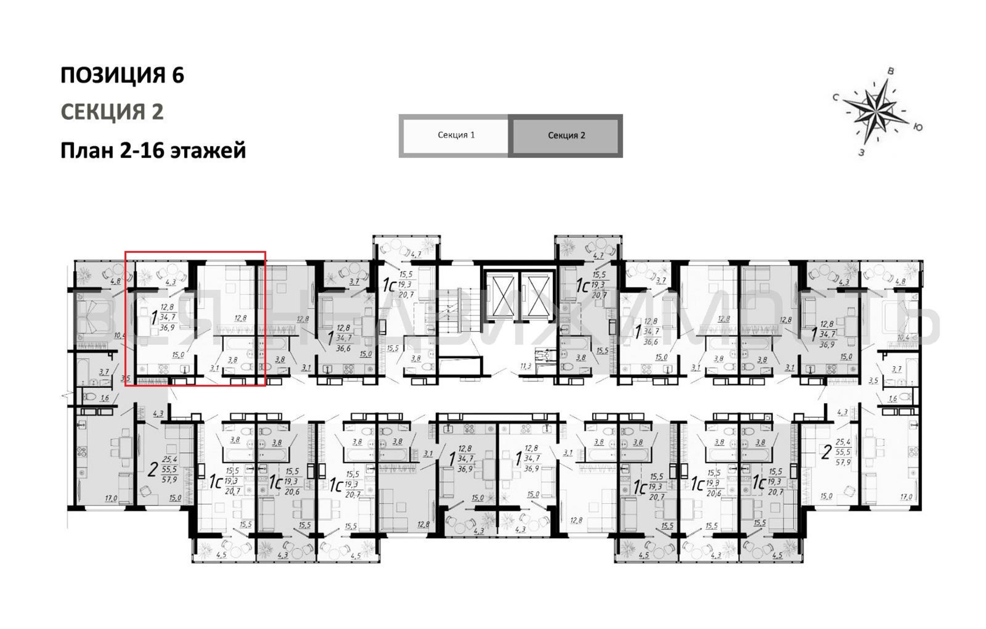 1-комнатная квартира, 36.90 м² 14/17 этаж ID объекта 100123318