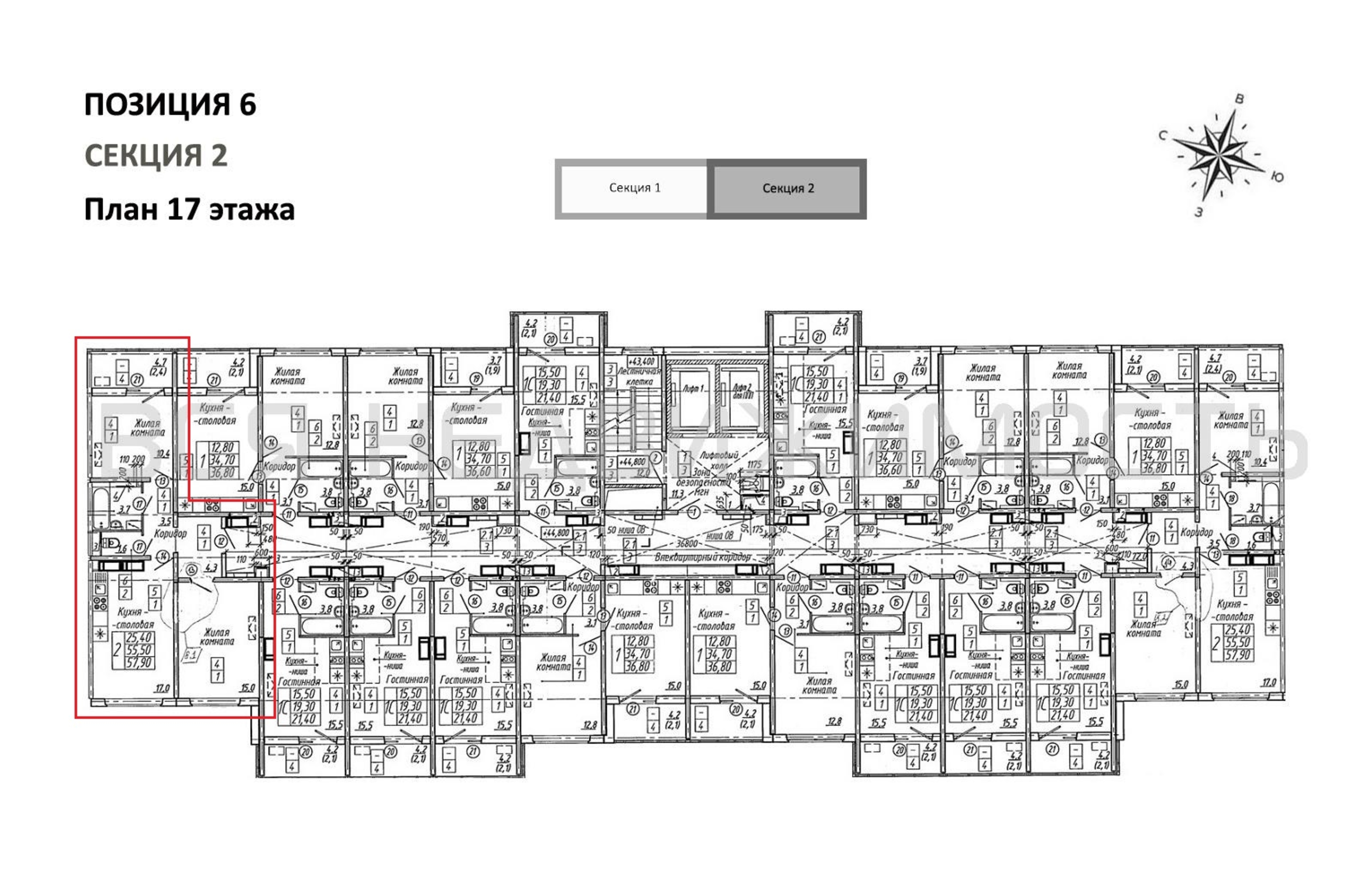 2-комнатная квартира, 57.90 м² 17/17 этаж ID объекта 100123365