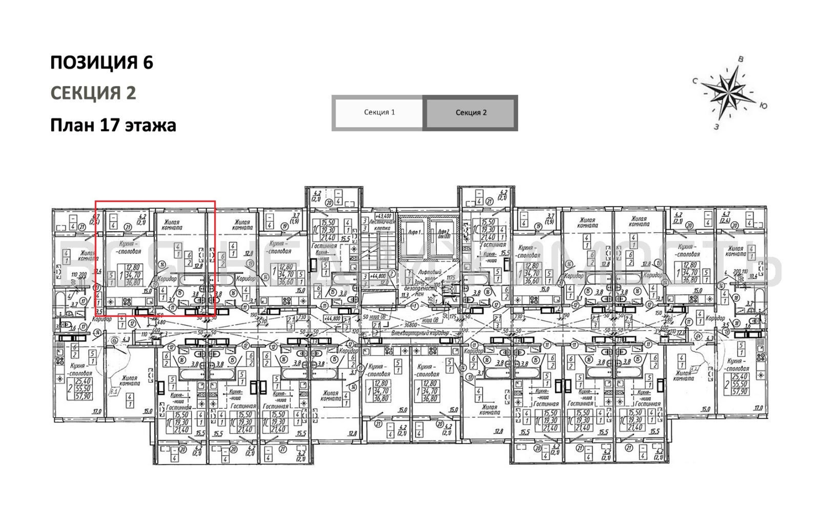 1-комнатная квартира, 36.80 м² 17/17 этаж ID объекта 100123366